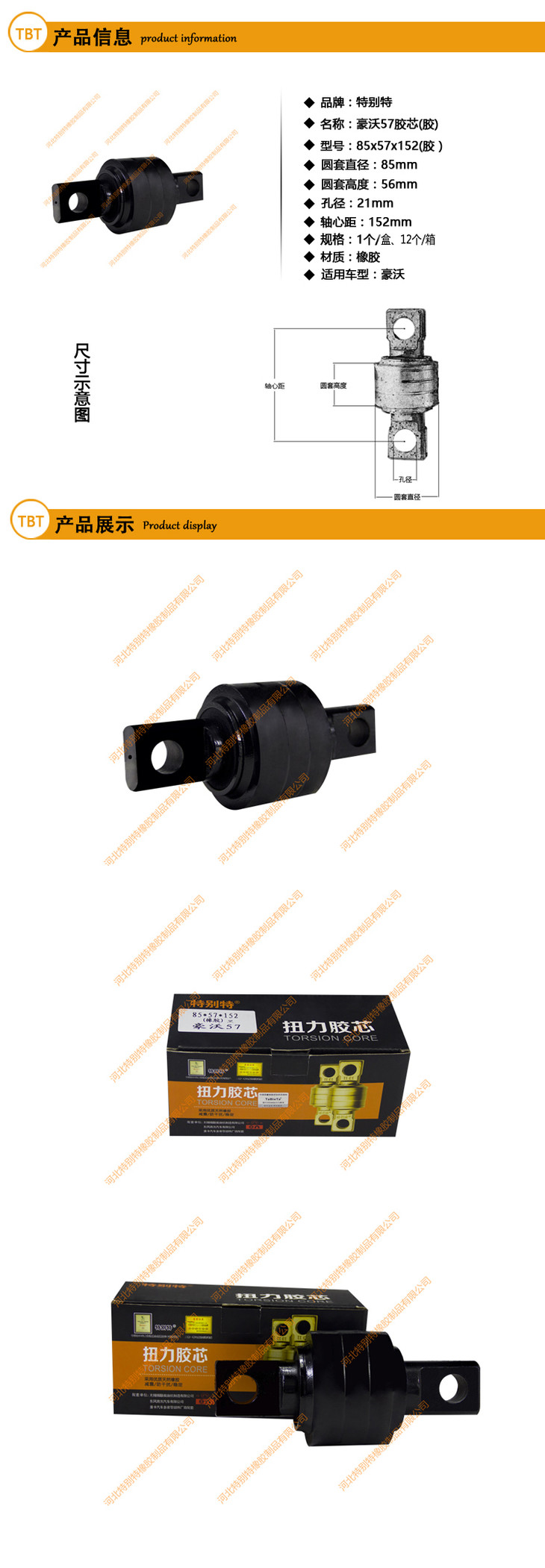 | 豪沃57扭力胶芯85*57*152(胶)(孔21)(高57)(单价=1个,12个=1箱)/豪沃57拉臂套/豪沃57拉力套85x57x152(8557152) |