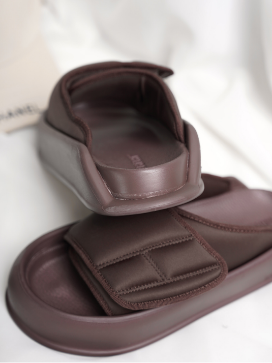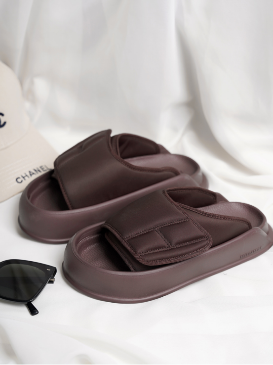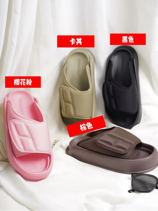 蓬蓬的面包感鞋面加上魔术贴设计 简洁的设计很特别 🔺EVA发泡脚垫,环保无毒,安全好穿 🔺下沉式鞋床设计,贴合脚底,遇水不打滑 🔺拖鞋内部高密结构,不吸水、防潮、久穿不臭 🔺4CM实心厚底,弹力足、柔软减震,持久耐穿 4个颜色可选:黑色,棕色,卡其,樱花粉 ⚠️35-39,建议脚背高、脚背宽的选大一码哦