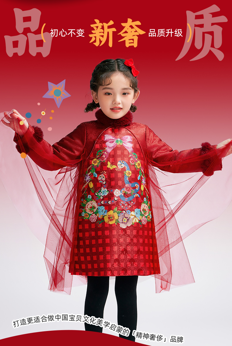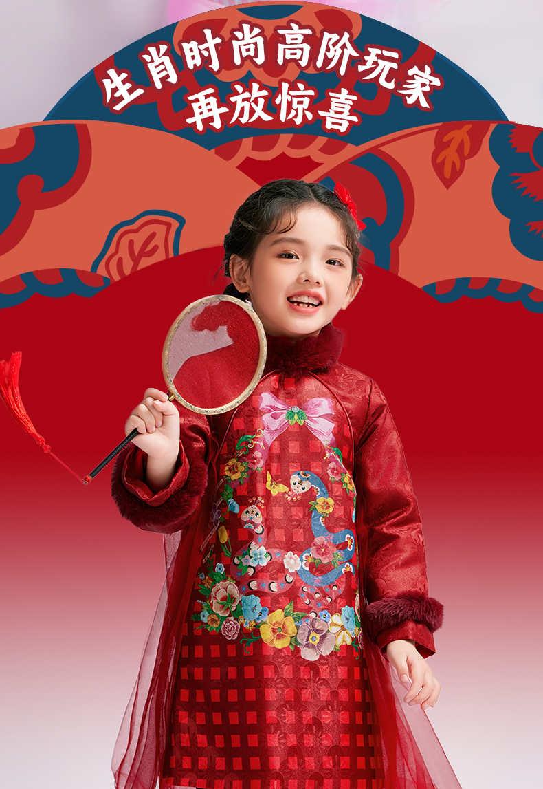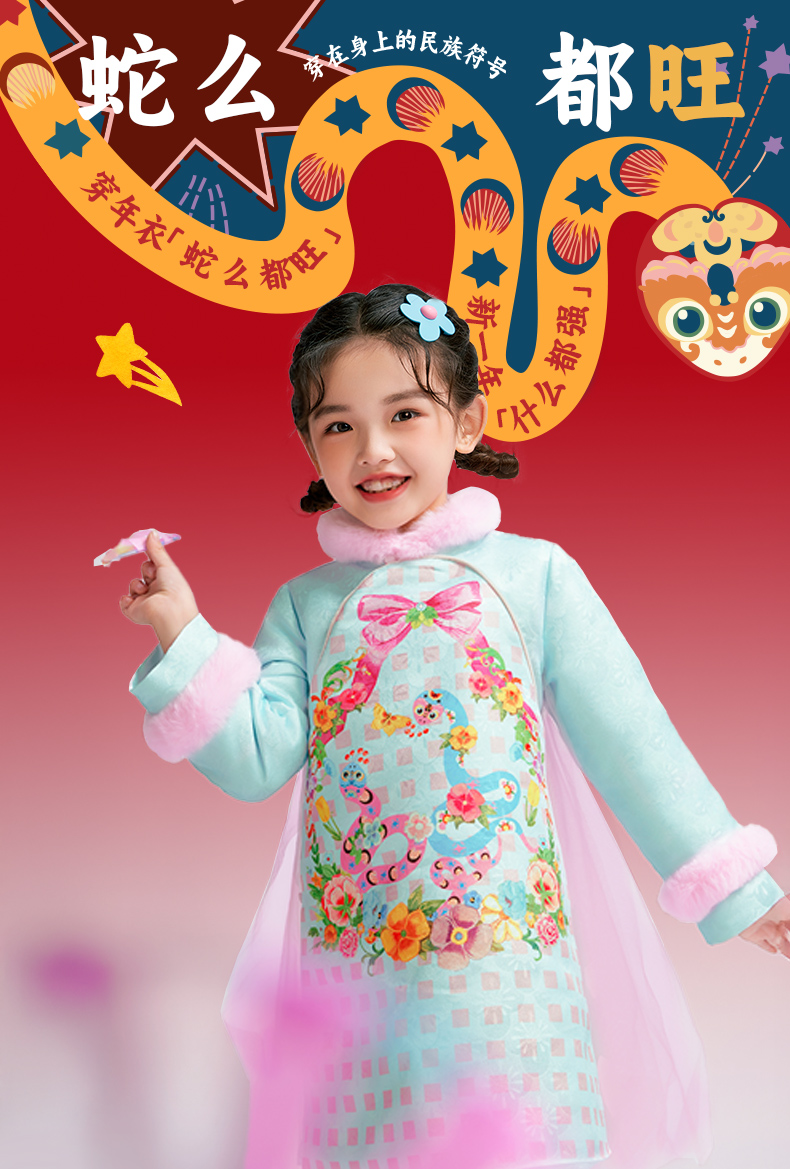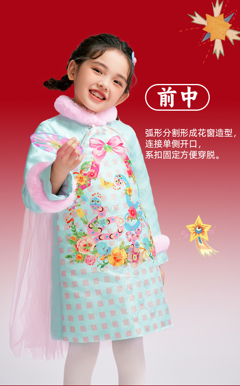 年衣童装女童改良旗袍连衣裙冬季新款儿童演出服甜美新中式棉服蛇蛇如意棉服