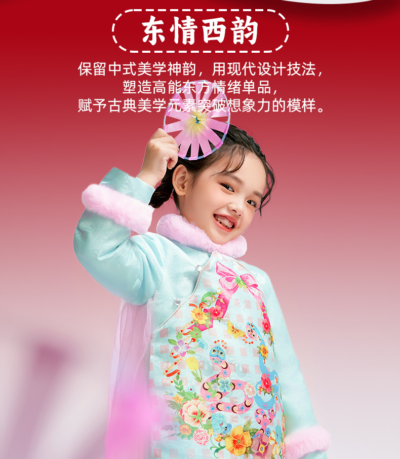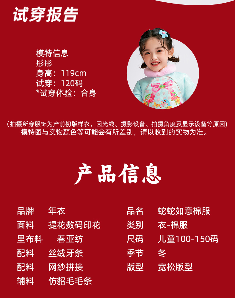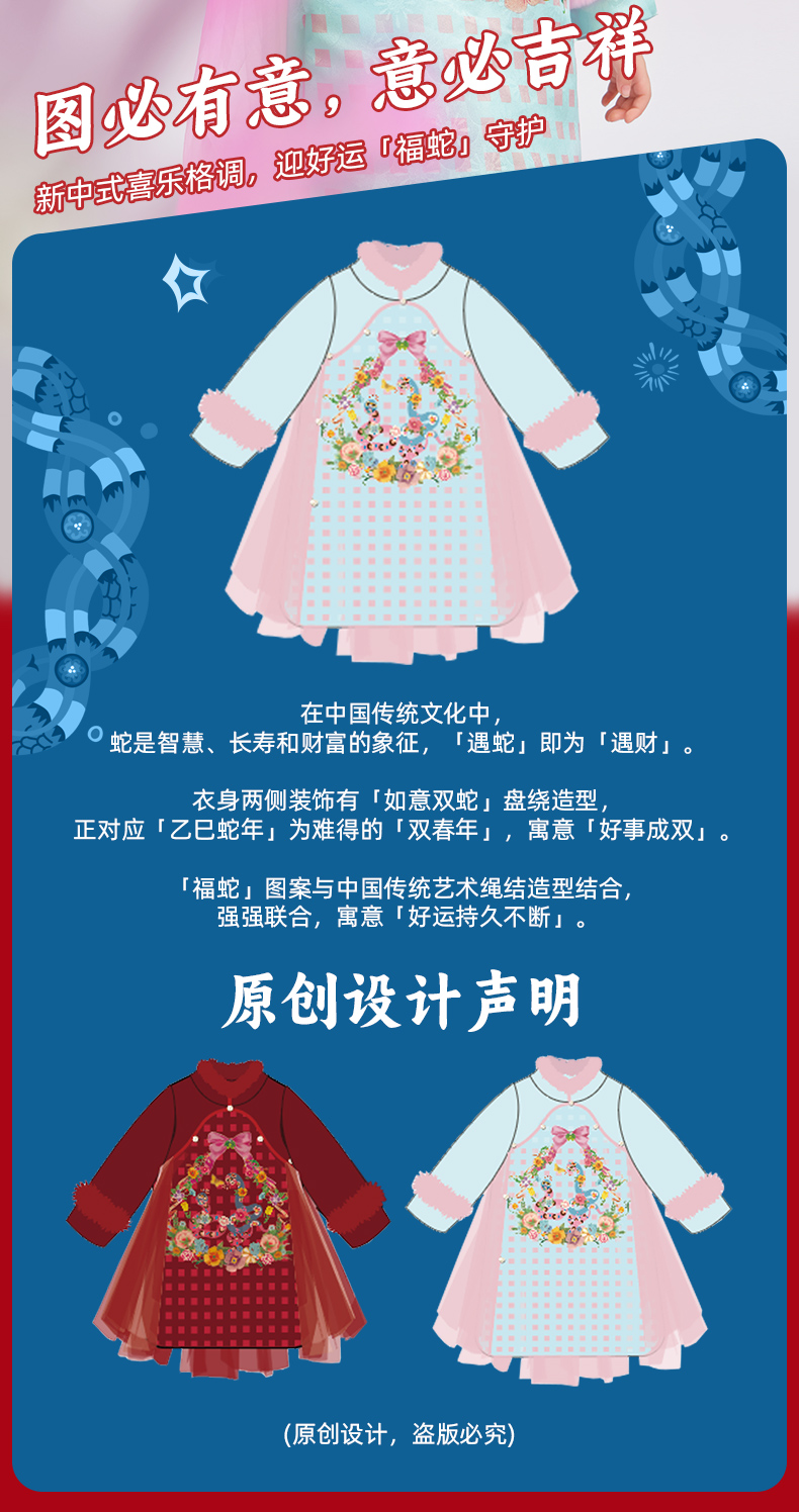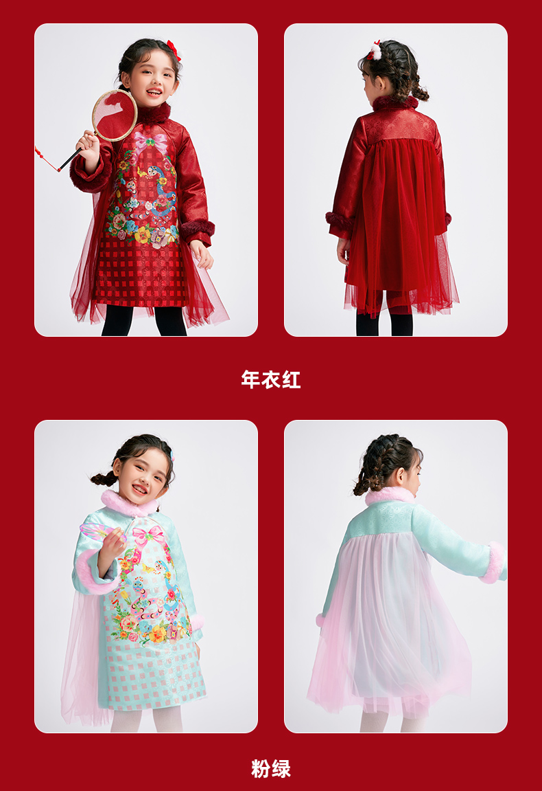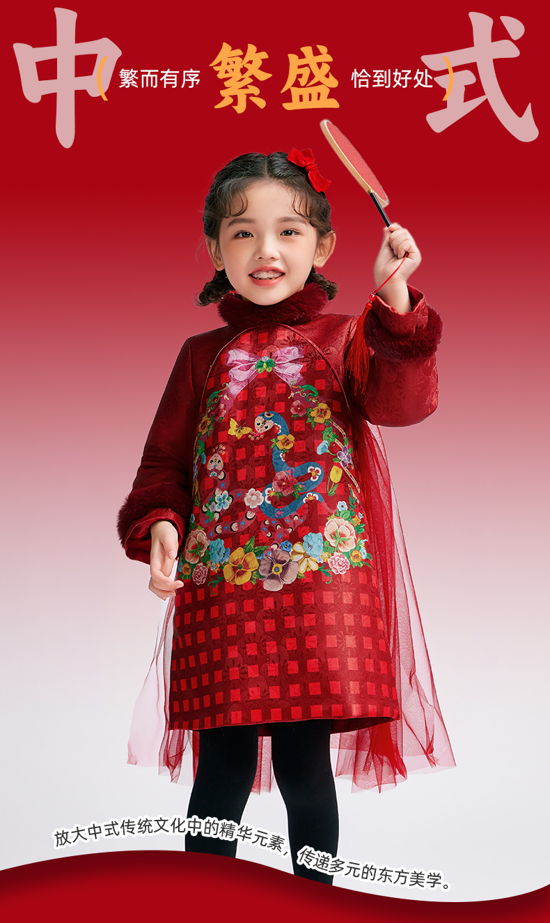 年衣童装女童改良旗袍连衣裙冬季新款儿童演出服甜美新中式棉服蛇蛇如意棉服