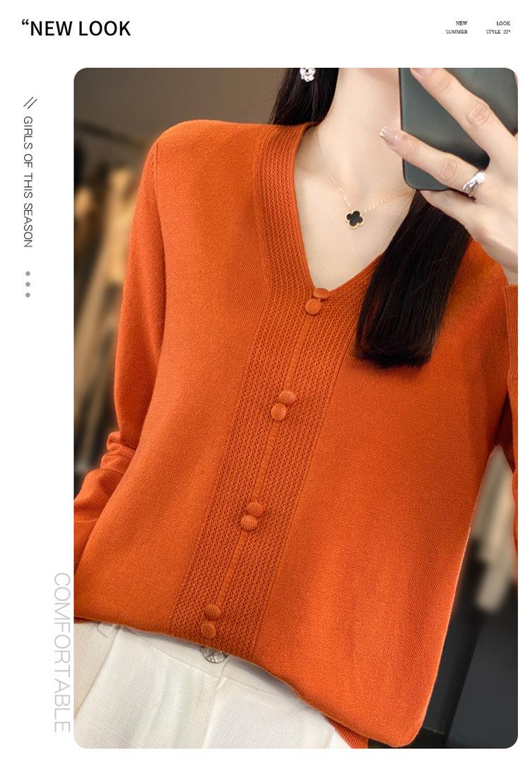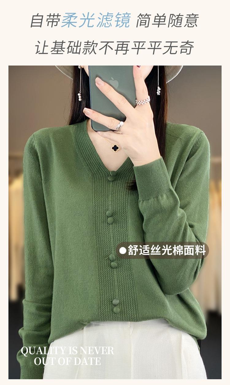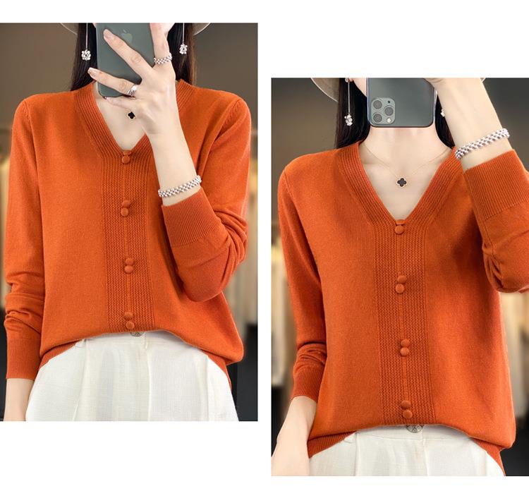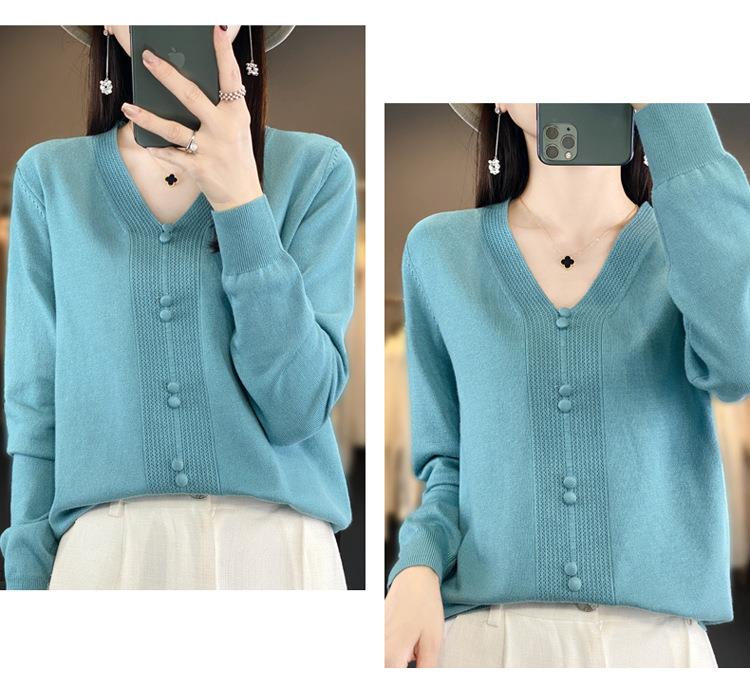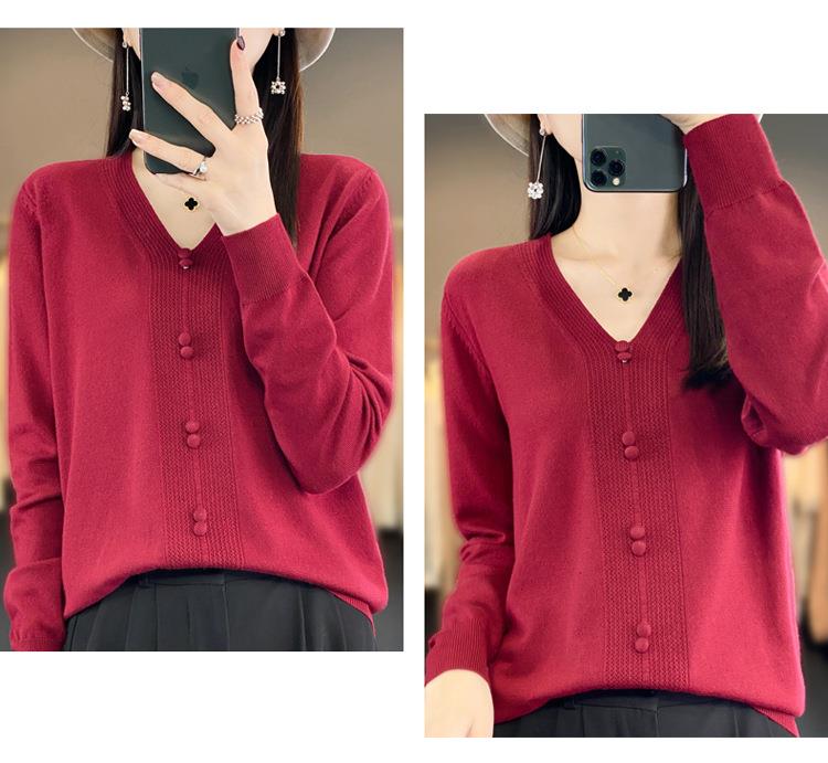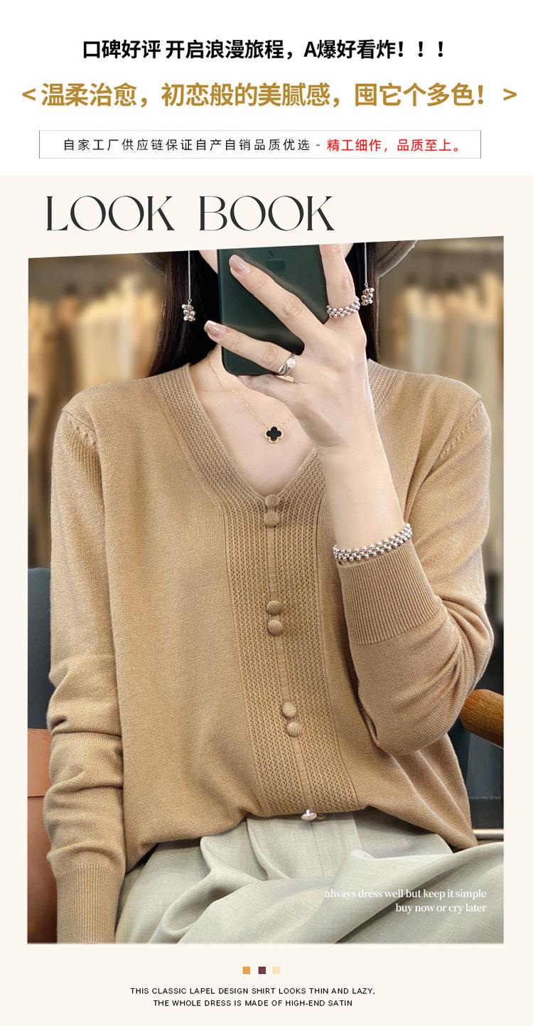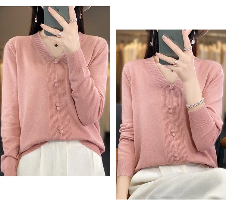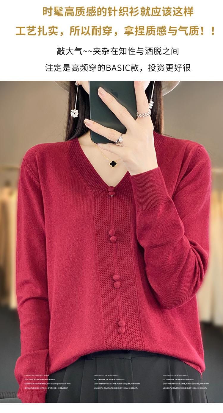 时尚2023秋季风气质丝光棉套头V字领常规毛衣女式针织衫厂家批发