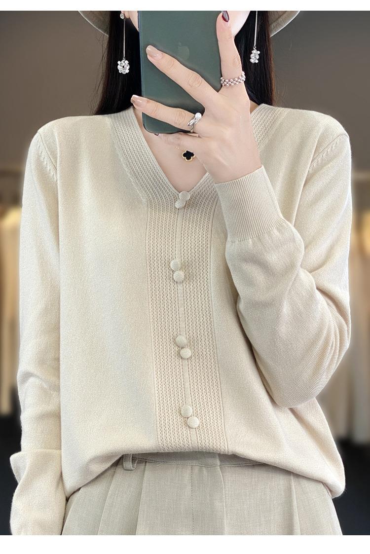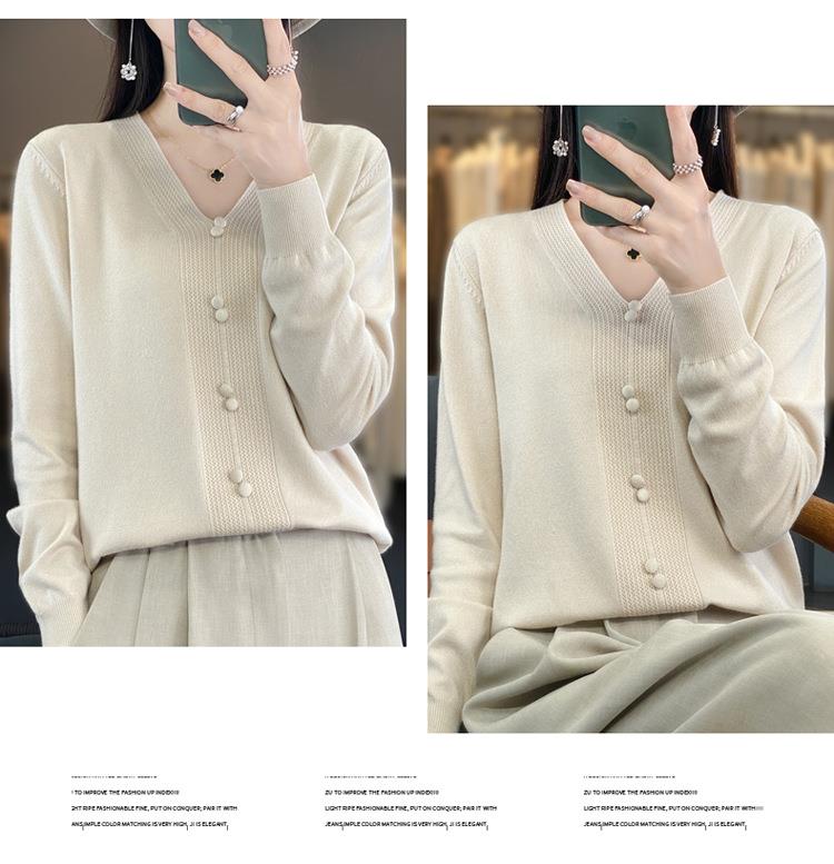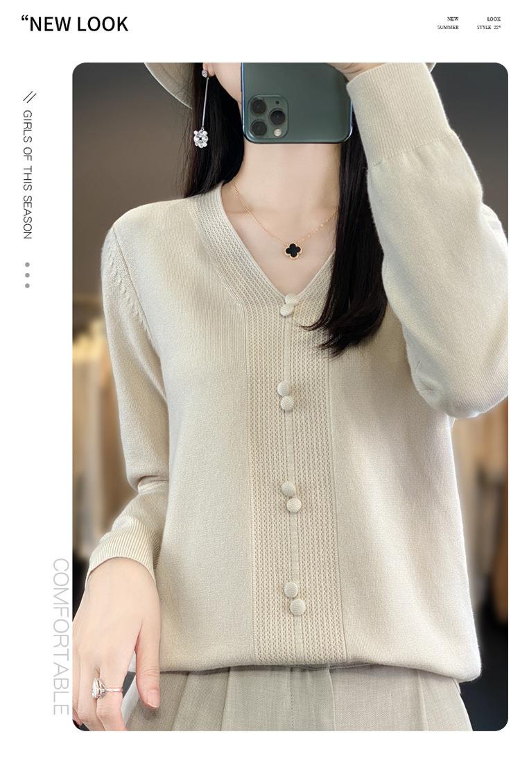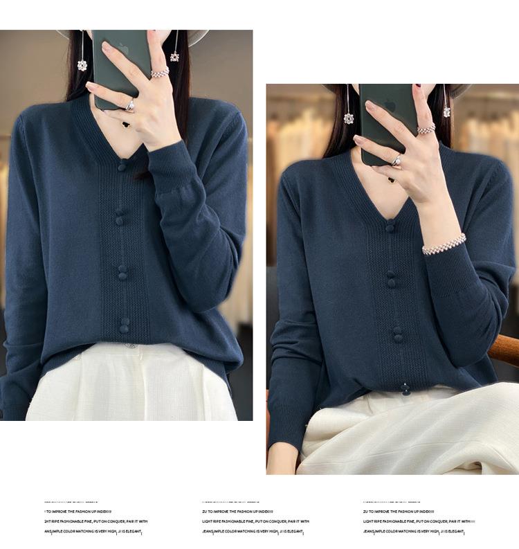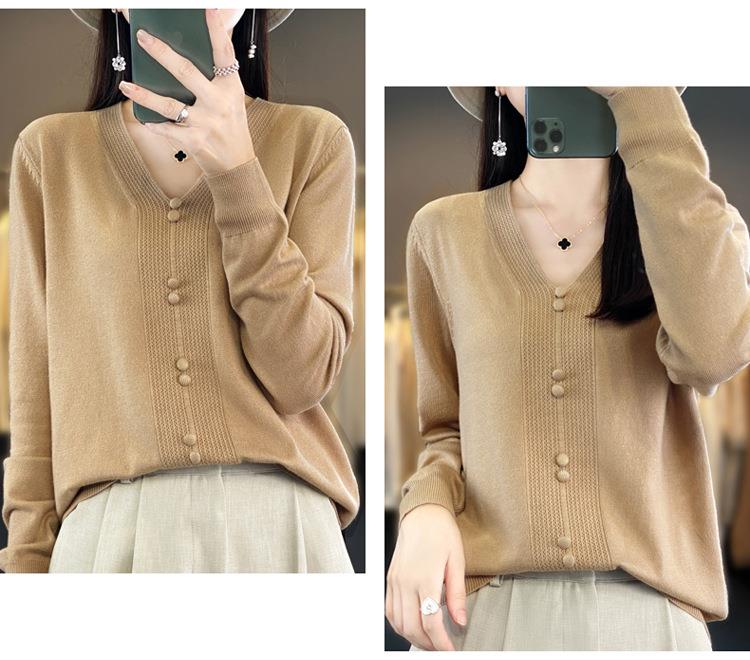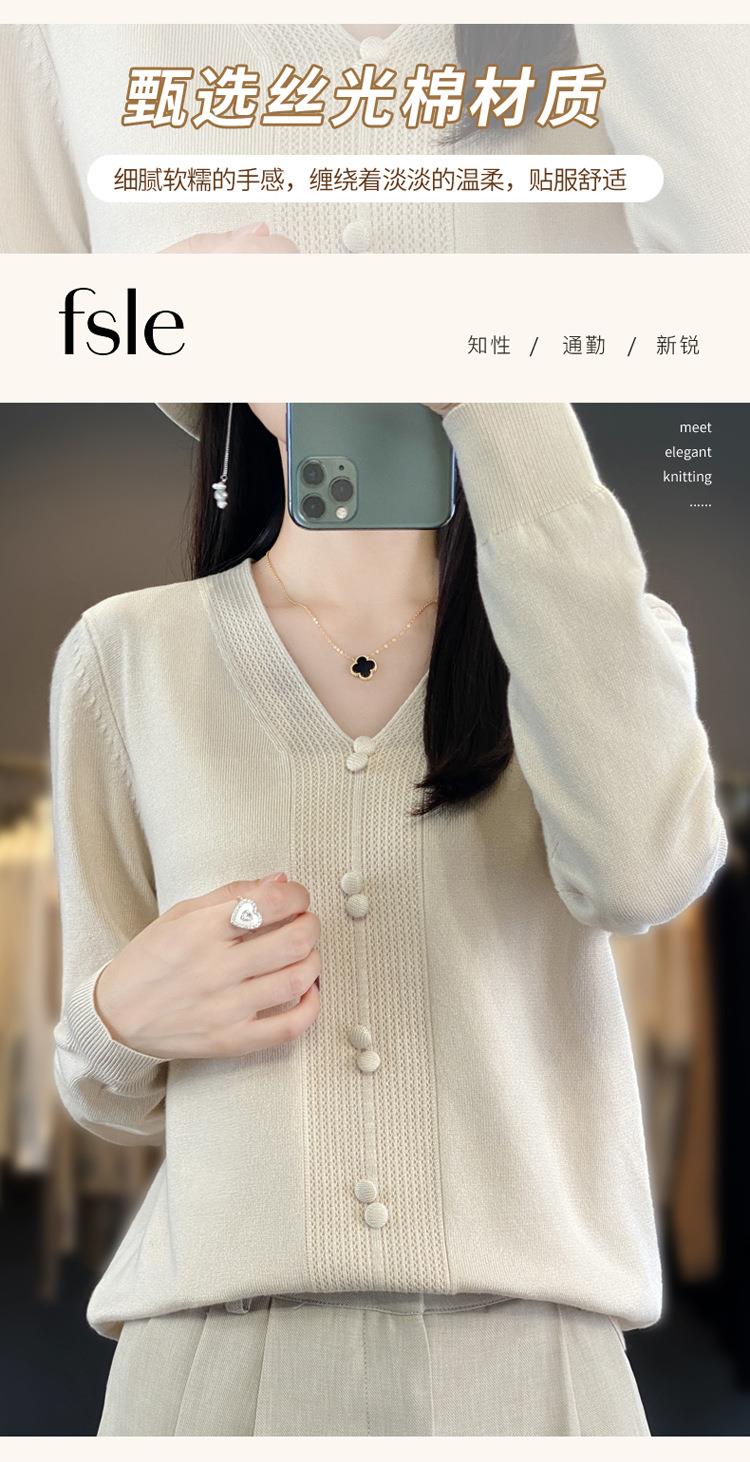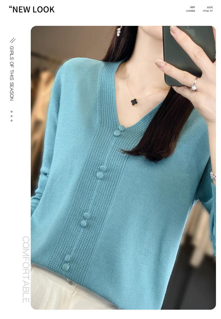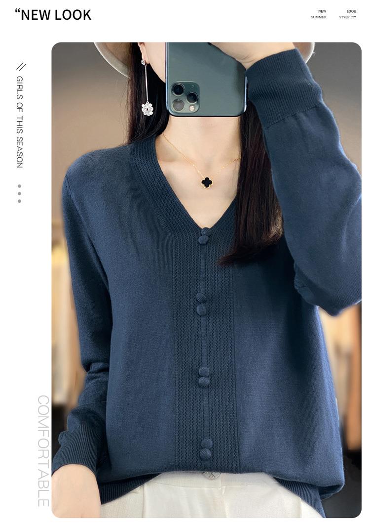 时尚2023秋季风气质丝光棉套头V字领常规毛衣女式针织衫厂家批发