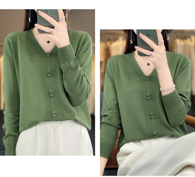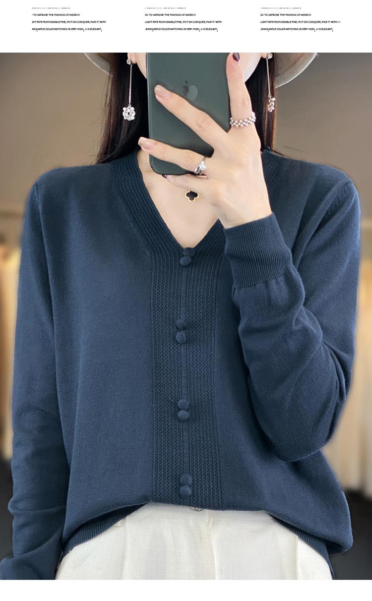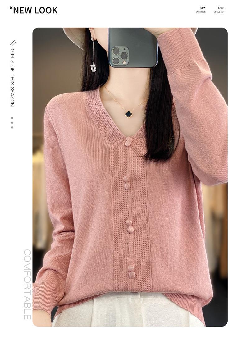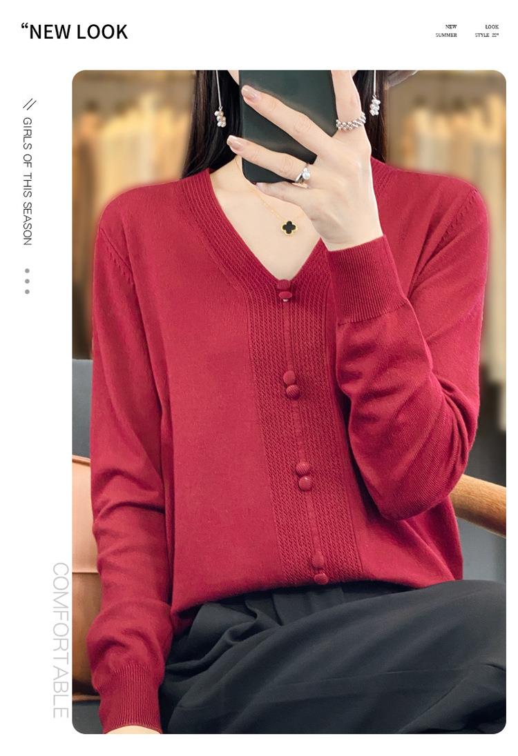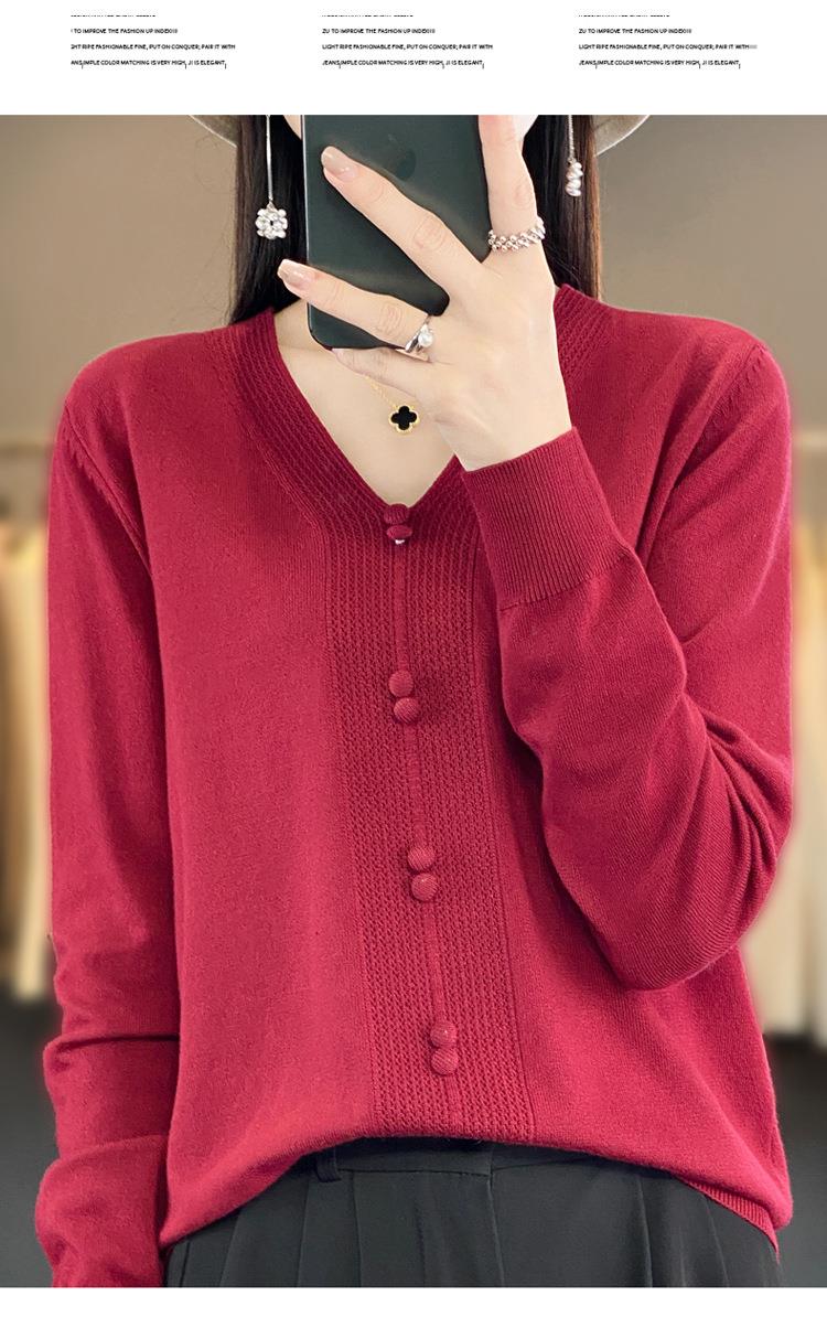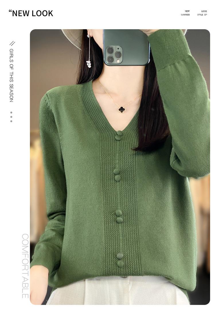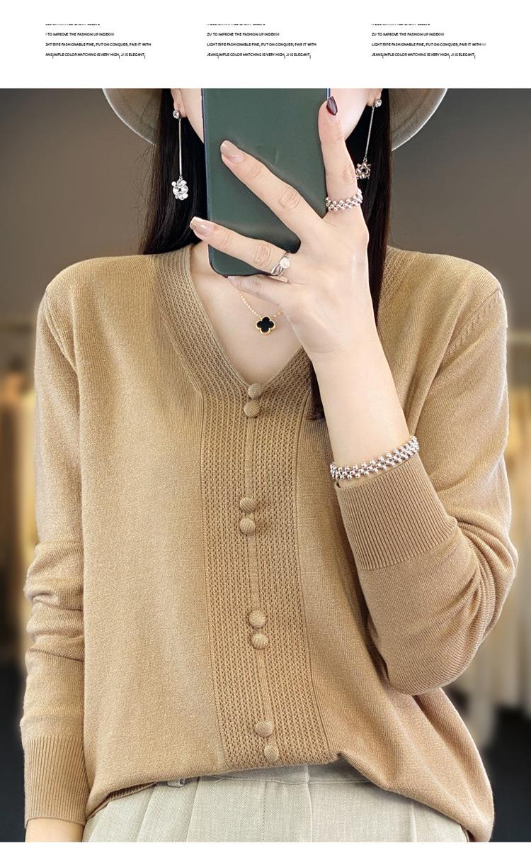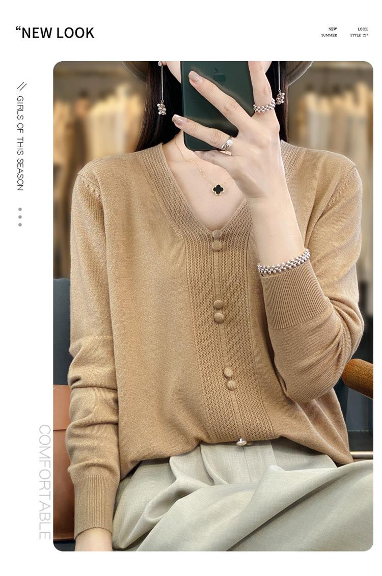 时尚2023秋季风气质丝光棉套头V字领常规毛衣女式针织衫厂家批发