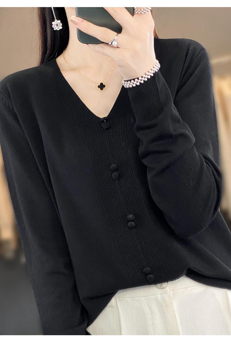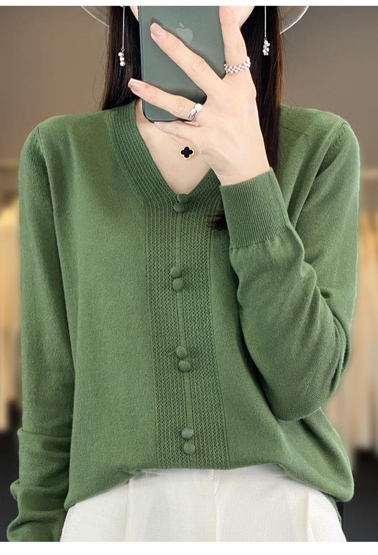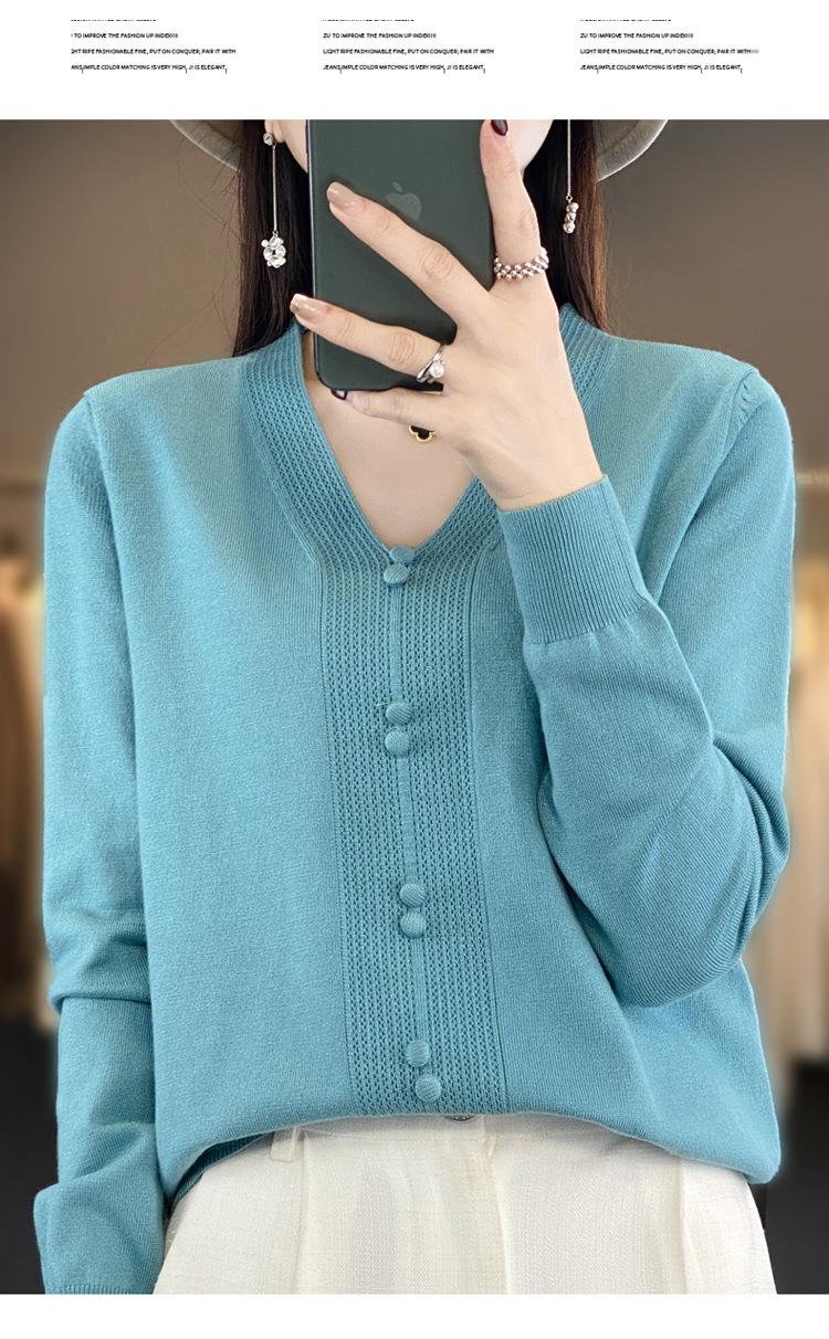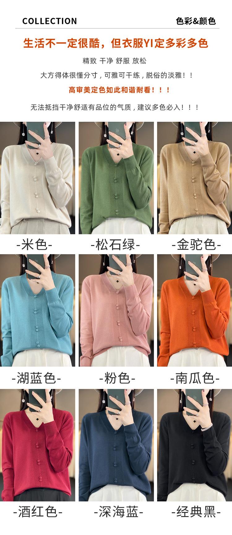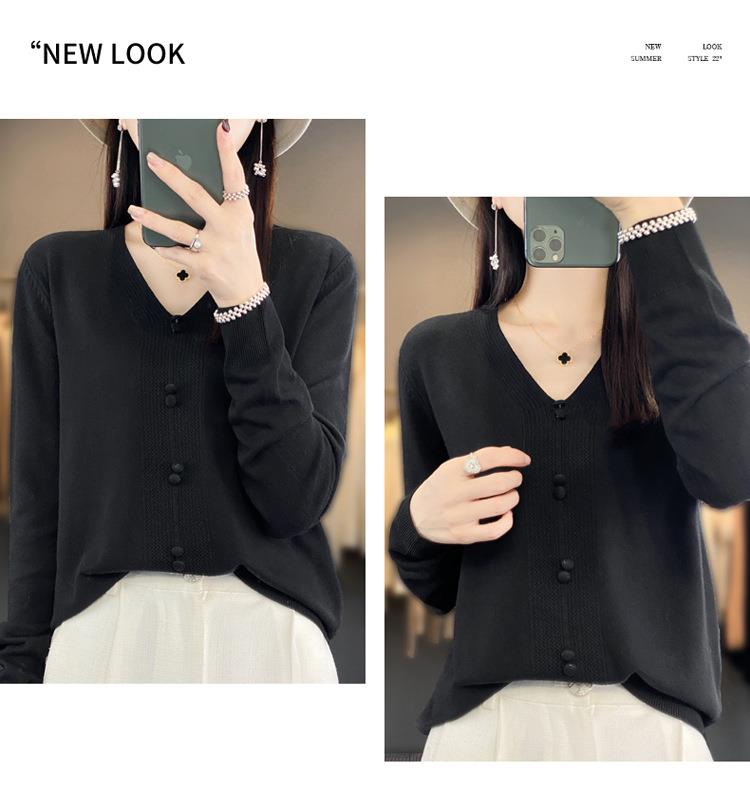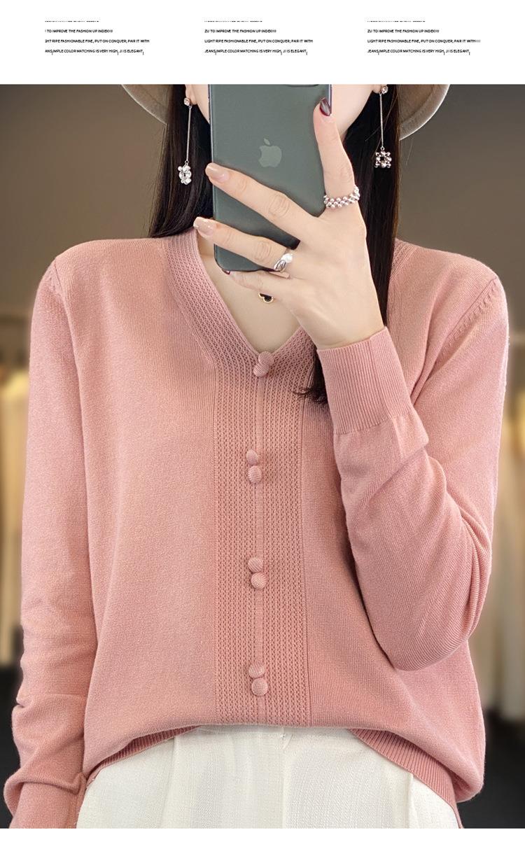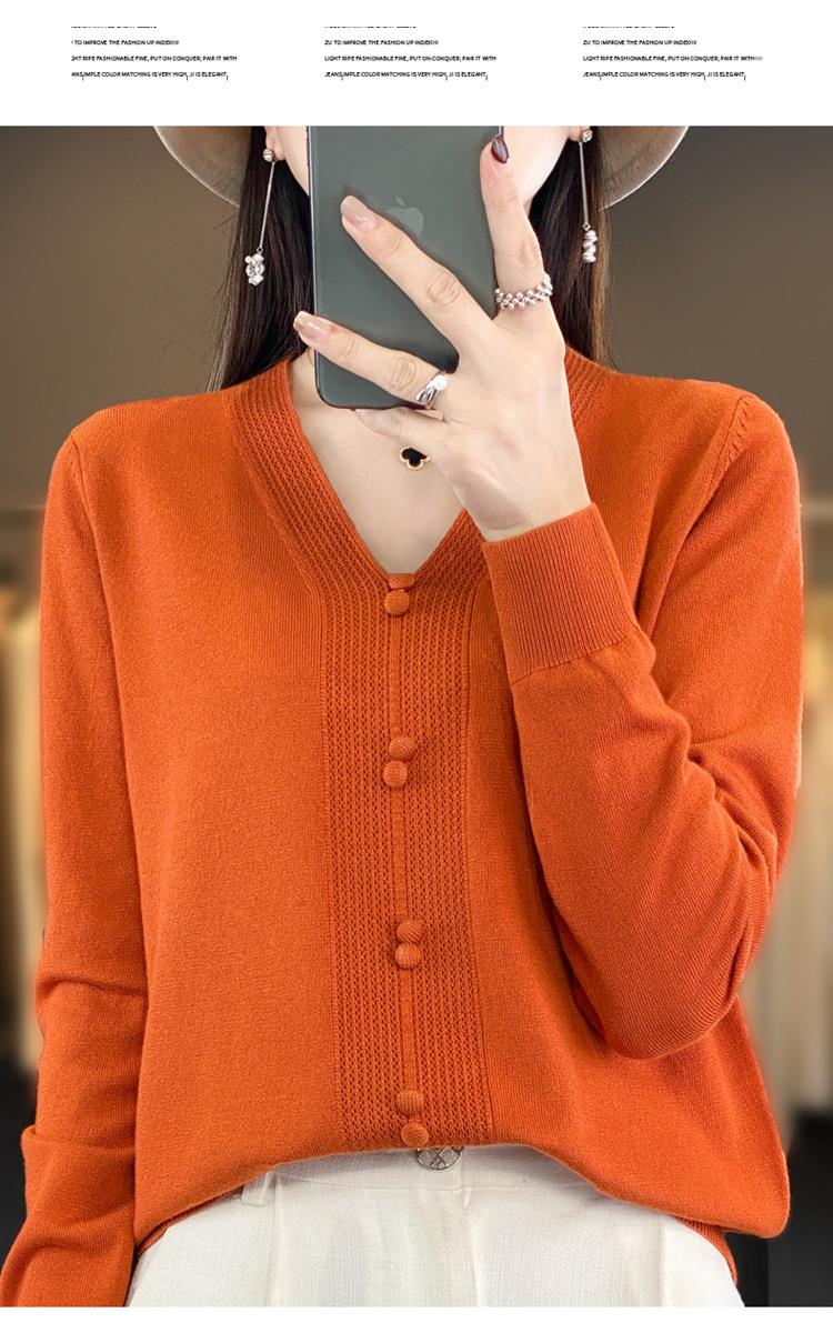 时尚2023秋季风气质丝光棉套头V字领常规毛衣女式针织衫厂家批发