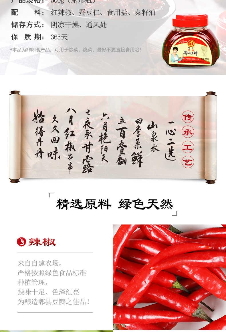 丹丹红油郫县豆瓣酱500g*2瓶扇形四川郫县特产川菜豆瓣豆仁辣椒酱