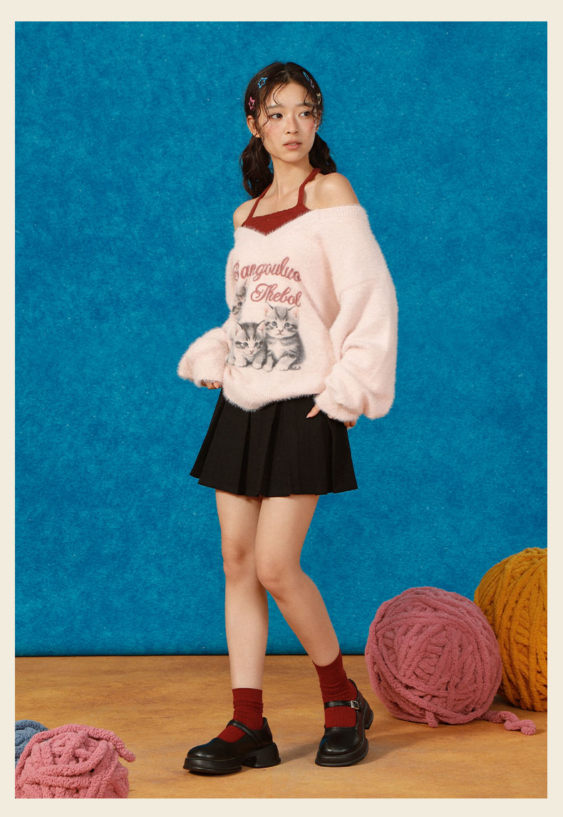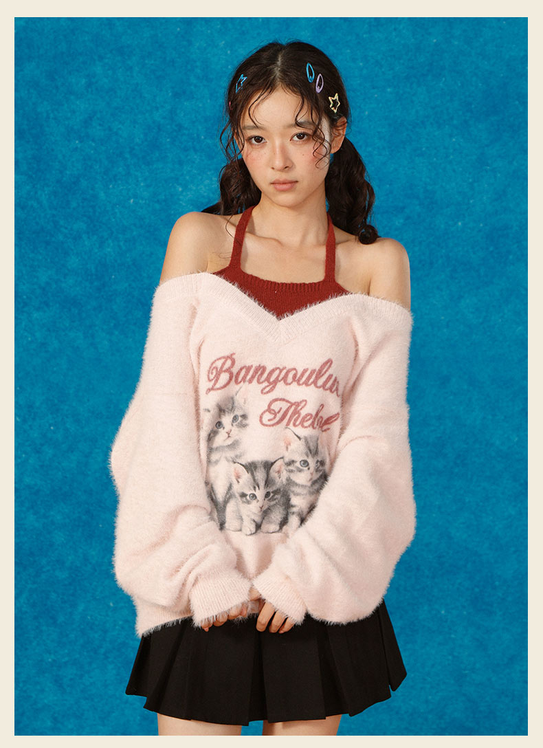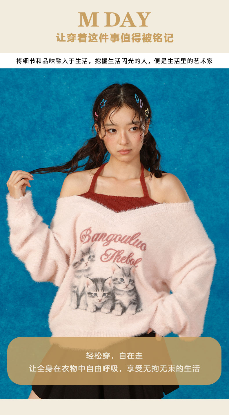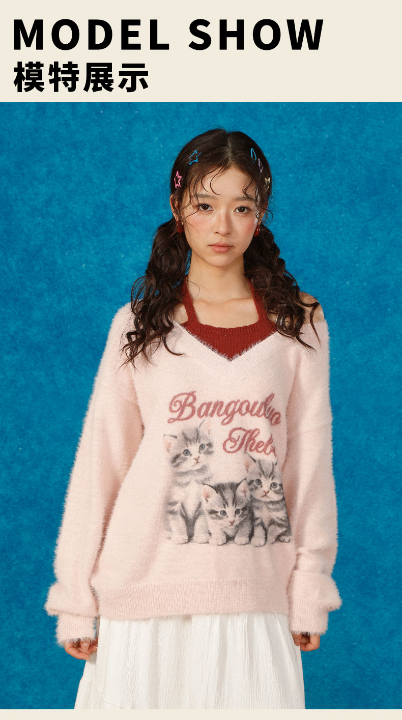 猫咪假两件宽松毛衣-纪念日百货门店同款166343249