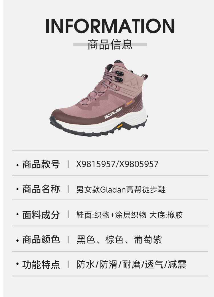 【徒步中国】【格拉丹】SCALER思凯乐户外徒步鞋男女高帮防滑耐磨透气防水登山