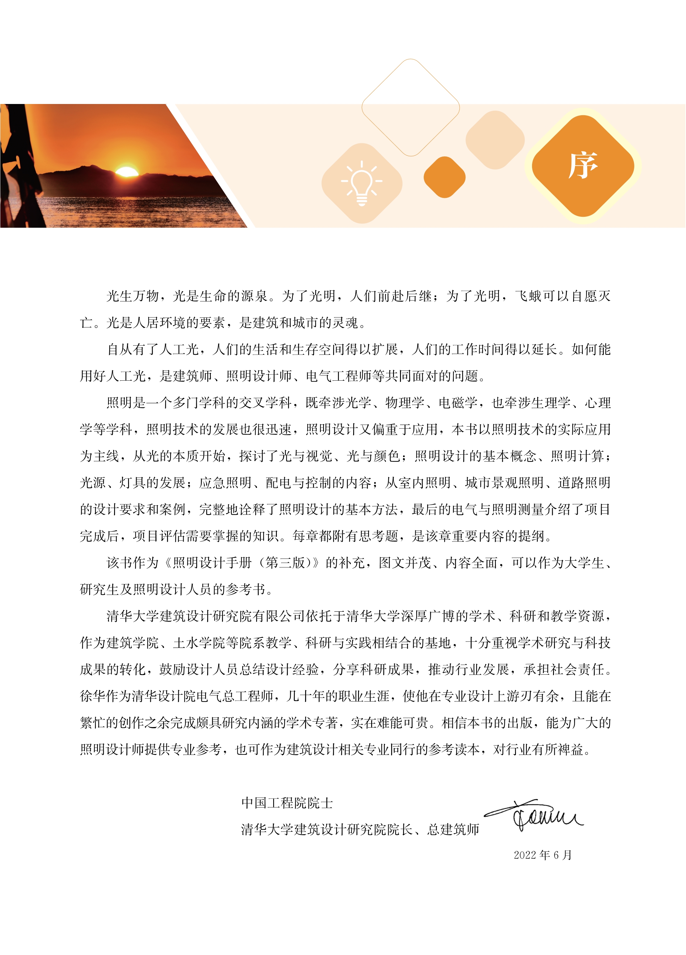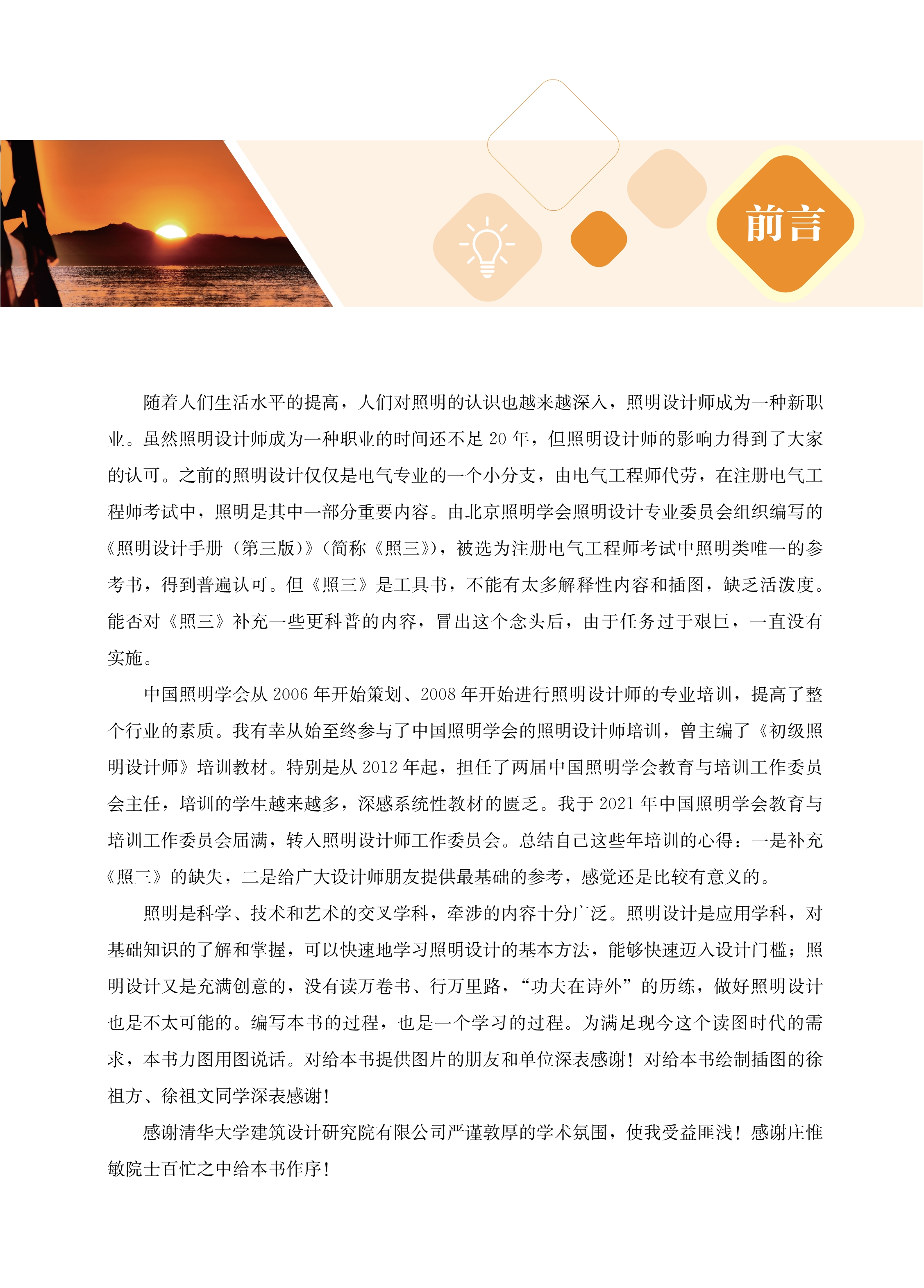 2、此书是徐华总工多年来从事照明设计实践探索的感悟和总结,是照明设计师必备的基础知识,内容丰富,并结合了时代发展,与时俱进,相信一定能够成为照明设计师及行业内相关人士的良师益友。