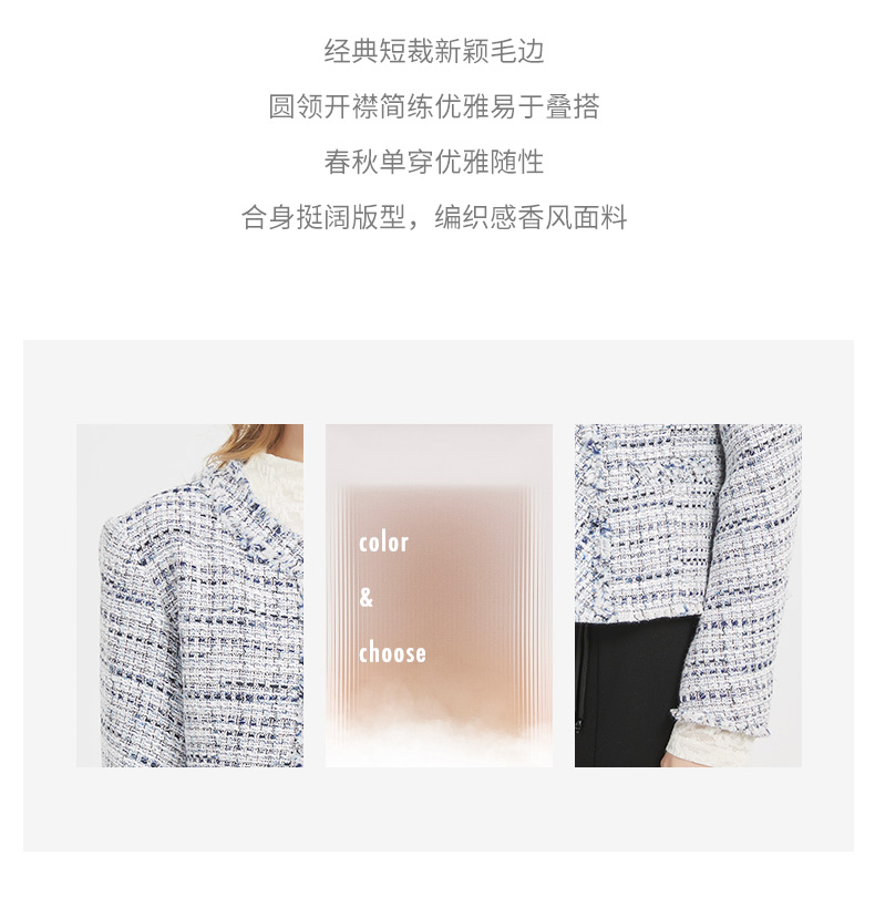 皮尔卡丹女装春季新款简约淑女修身小香风外套C51UL012H0