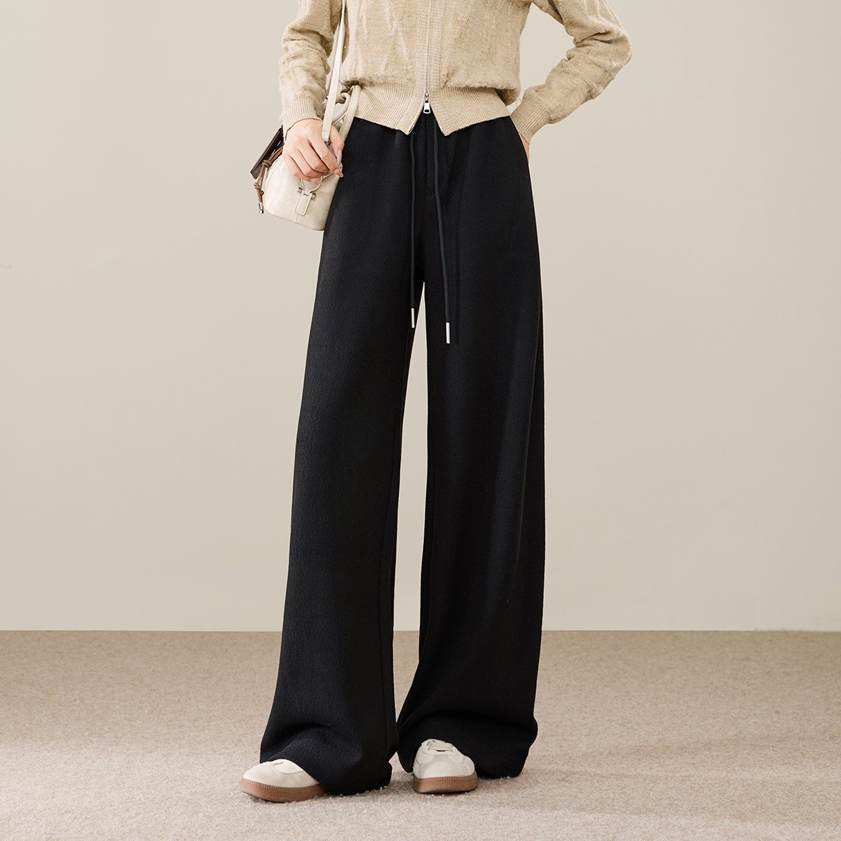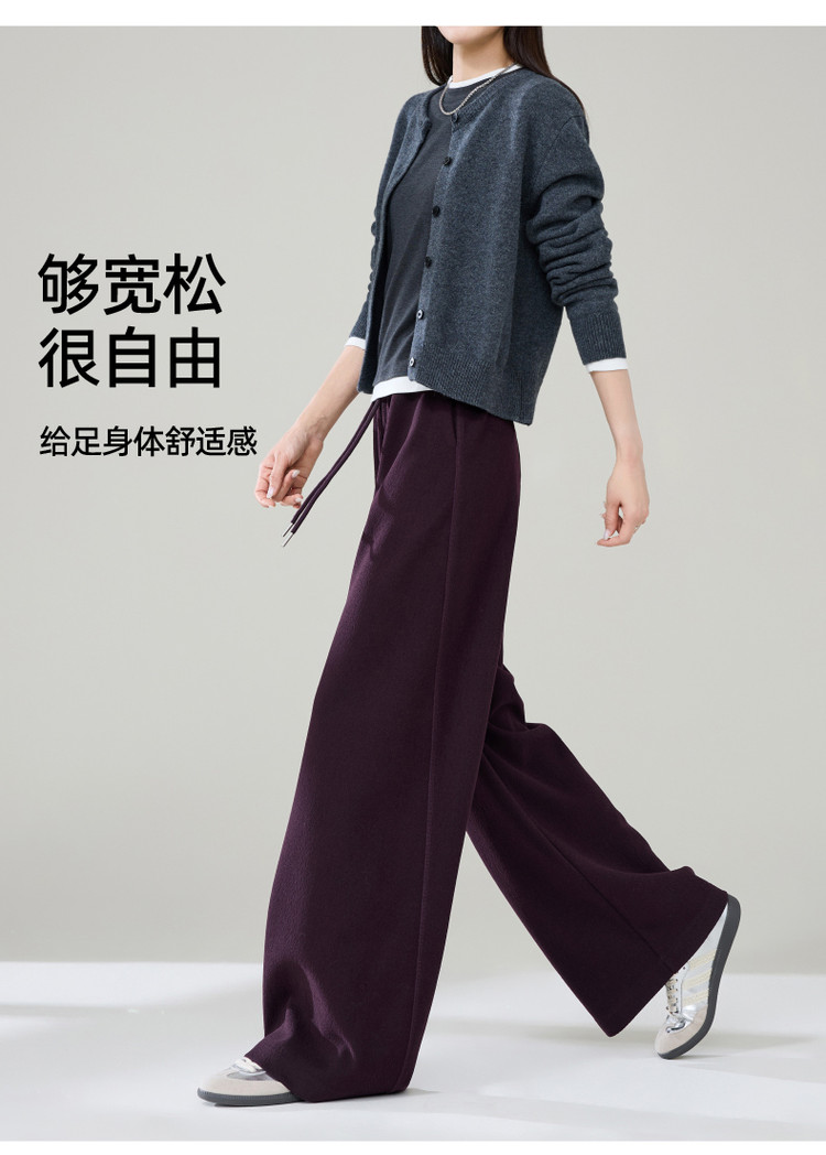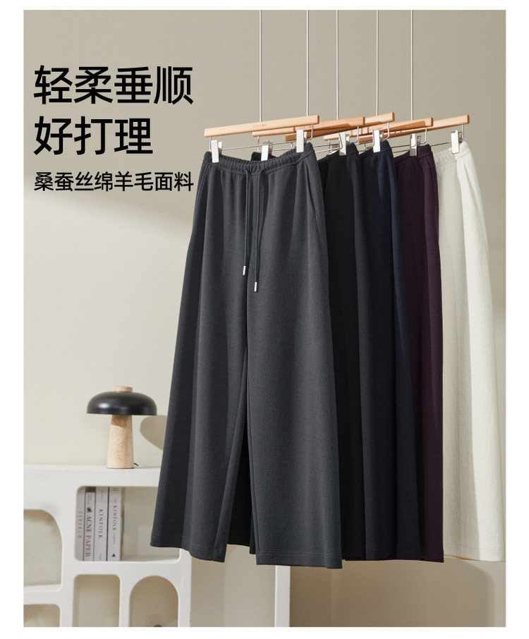 【含桑蚕丝羊毛-阔腿裤】逸阳秋冬云朵裤宽松直筒拖地裤子8171AV