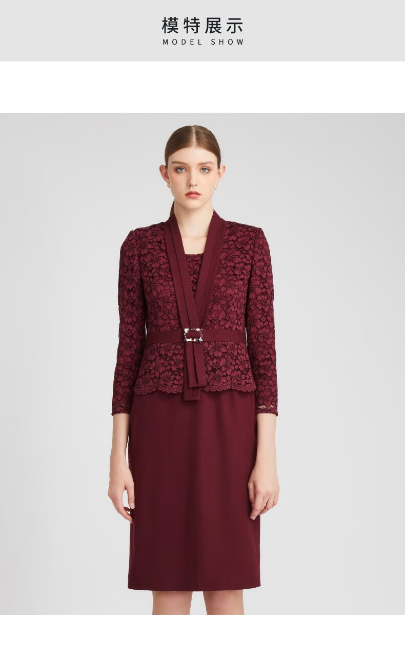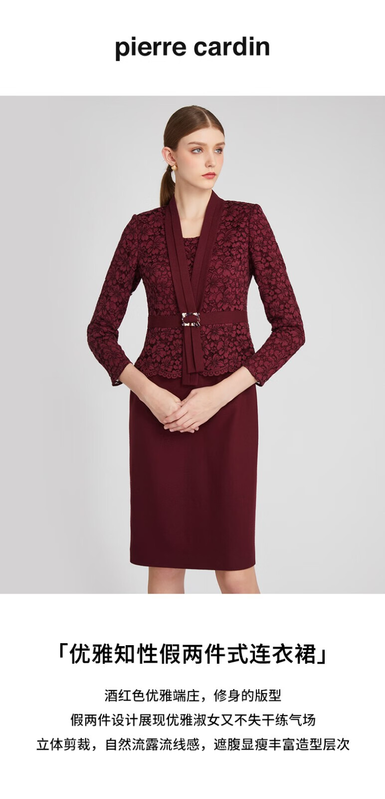 皮尔卡丹女装秋新款简约通勤修身淑女连衣裙P2318E2873T0