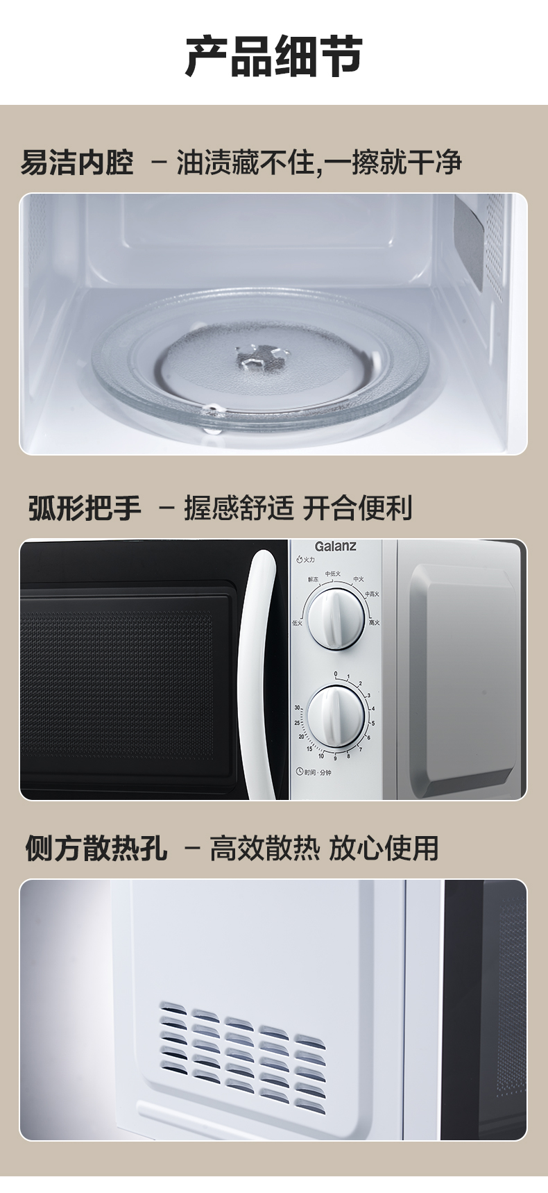 格兰仕(Galanz) 微波炉 20升经典转盘 360°均匀加热旋钮简易操作多档火力调节 侧拉门设计SE(W3)