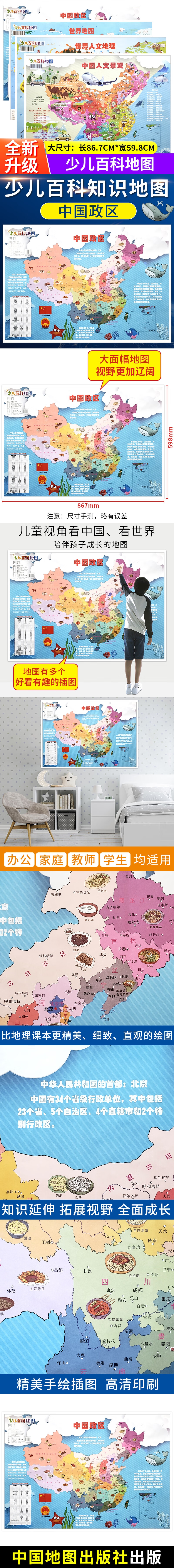 少儿百科地图(四张) 中国政区 世界地图 世界人文地理 世界人文景观
