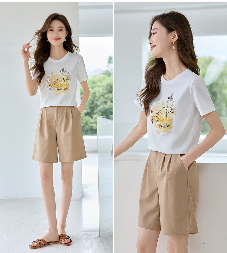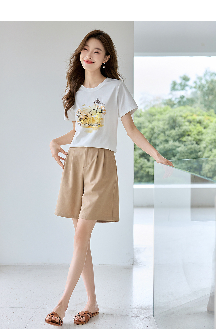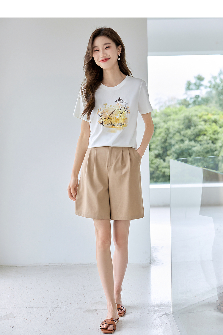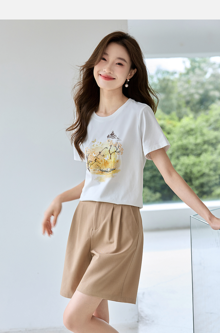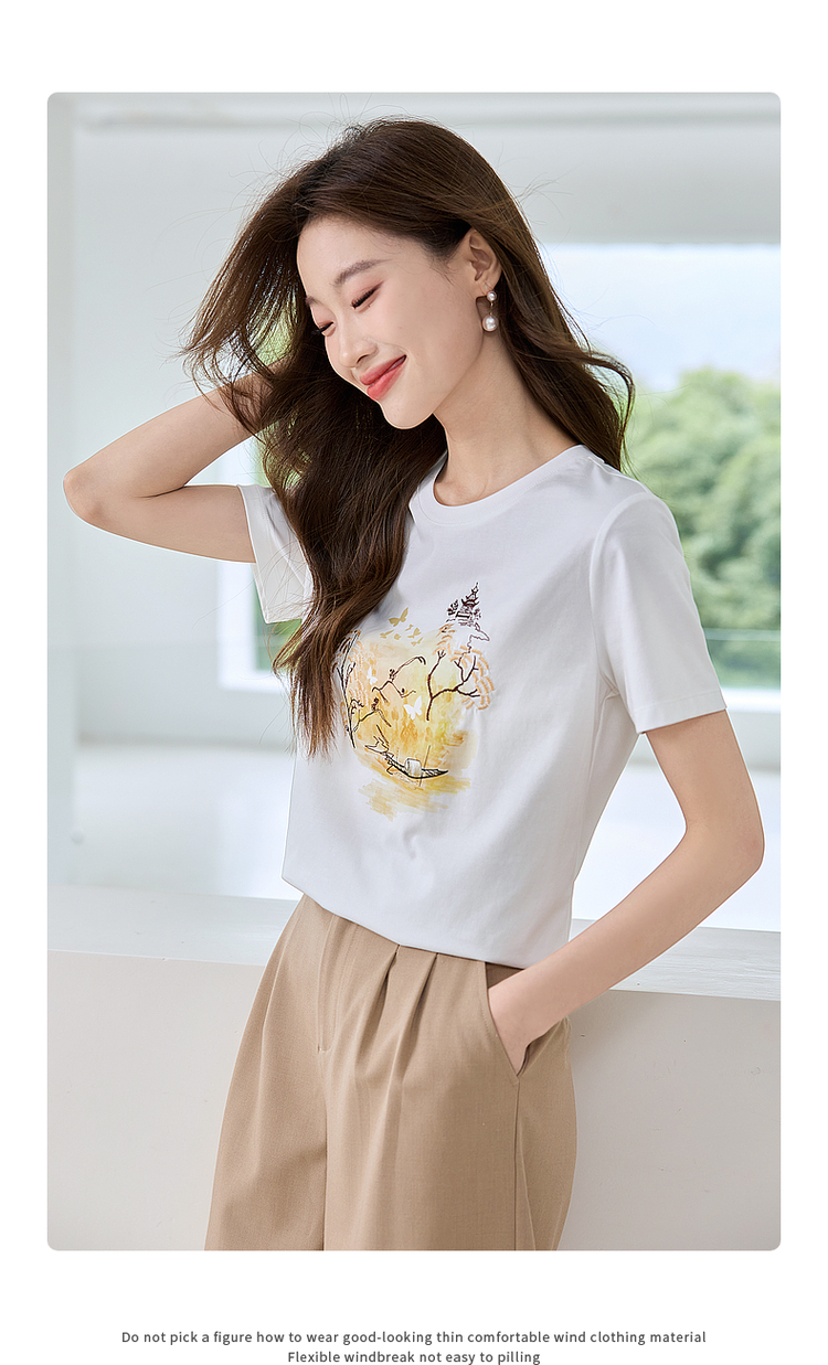 【专属特价】熙世界2025夏季新款轻国风水墨晕染刺绣白色T恤短袖设计感上衣