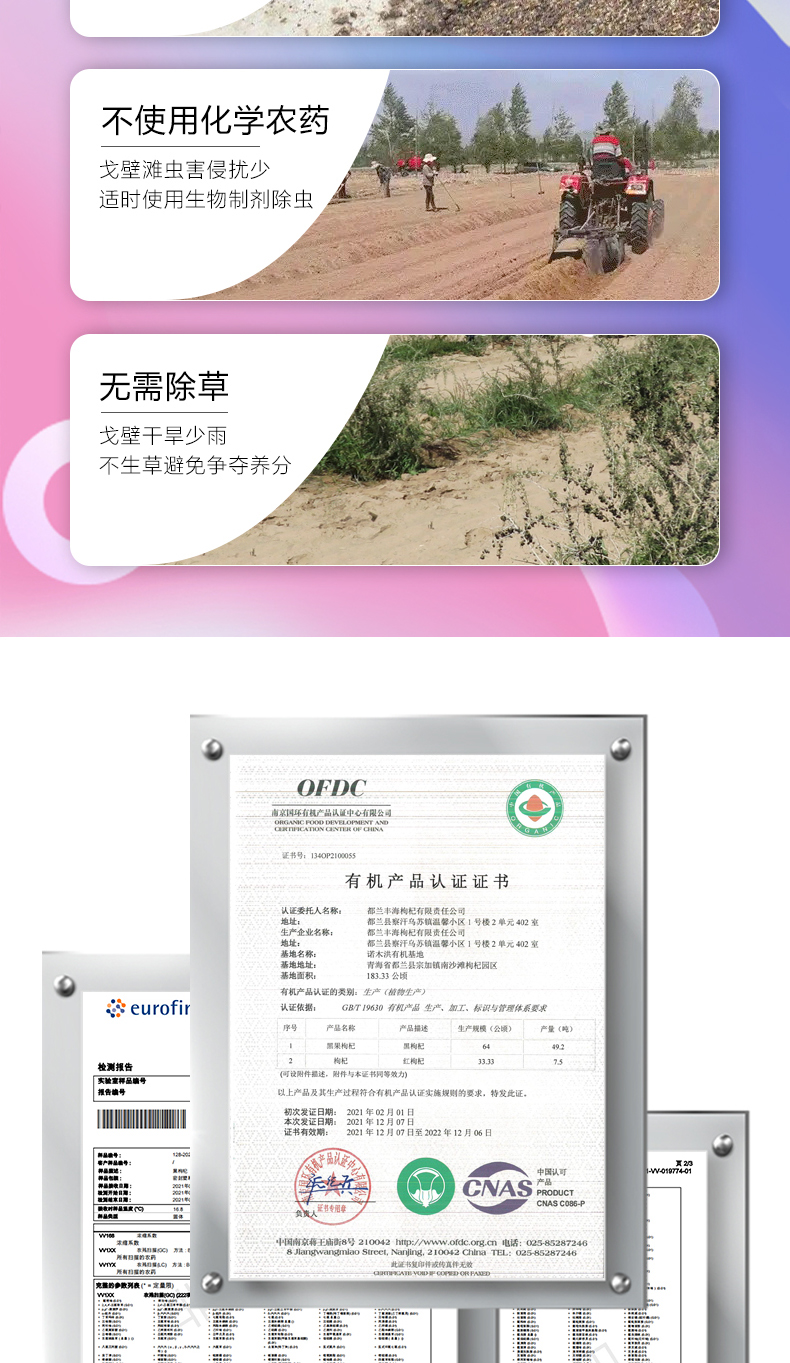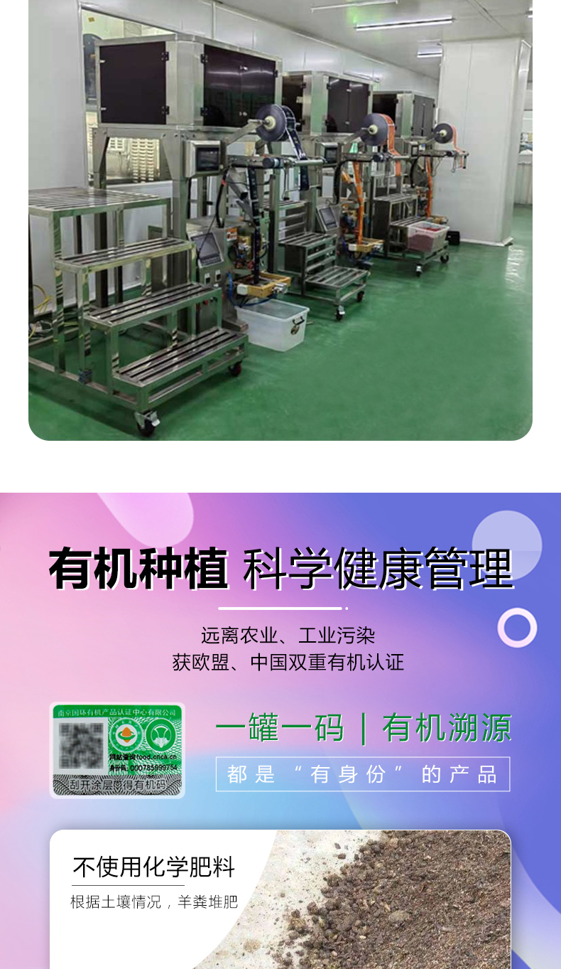 我们坚持遵循有机标准,种植过程不使用农药,化肥,