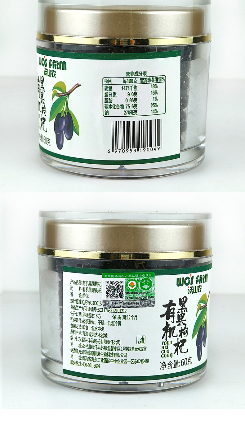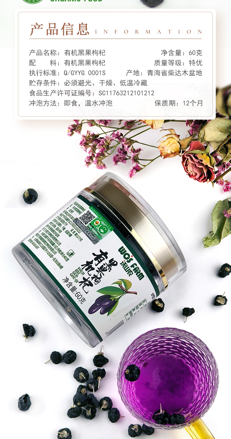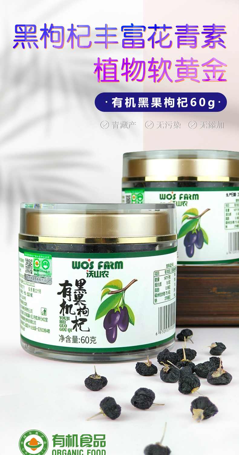 沃山农有机黑枸杞青海黑果干枸杞子60g罐装泡水无硫熏自然不染色