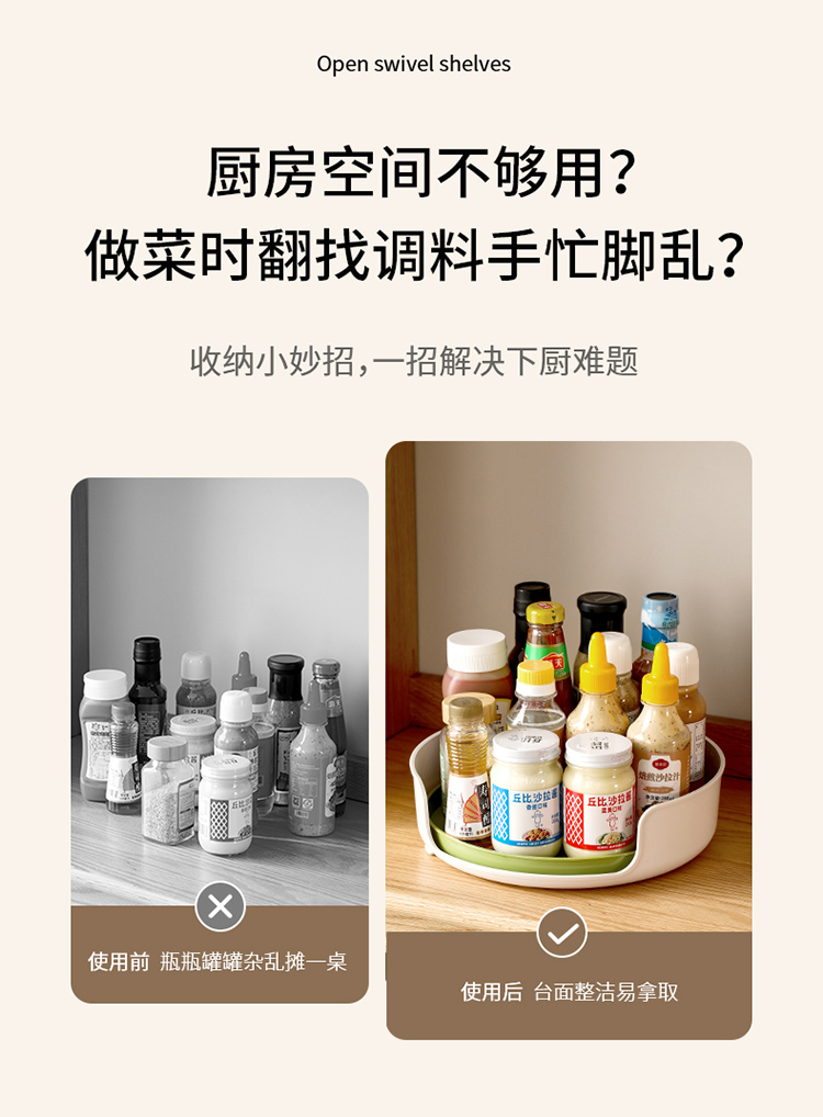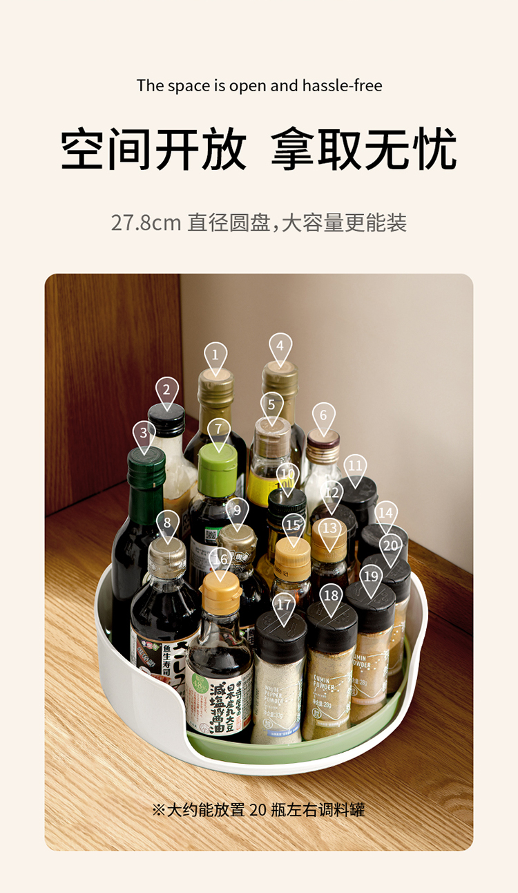 FaSoLa可旋转调料置物架厨房台面多功能托盘油盐酱醋调味料收纳架