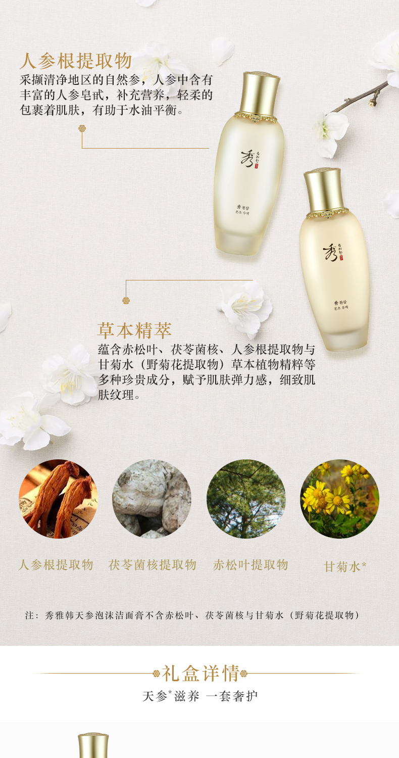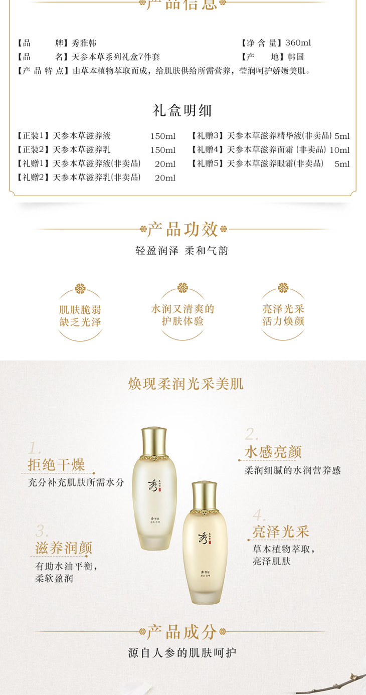 秀雅韩 水乳套装天参本草系列礼盒7件套360ml