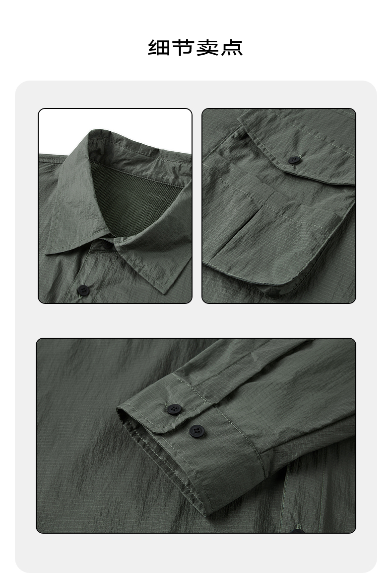 GXG男装 苔藓绿口袋设计长袖衬衫24年夏季热卖G24X032007