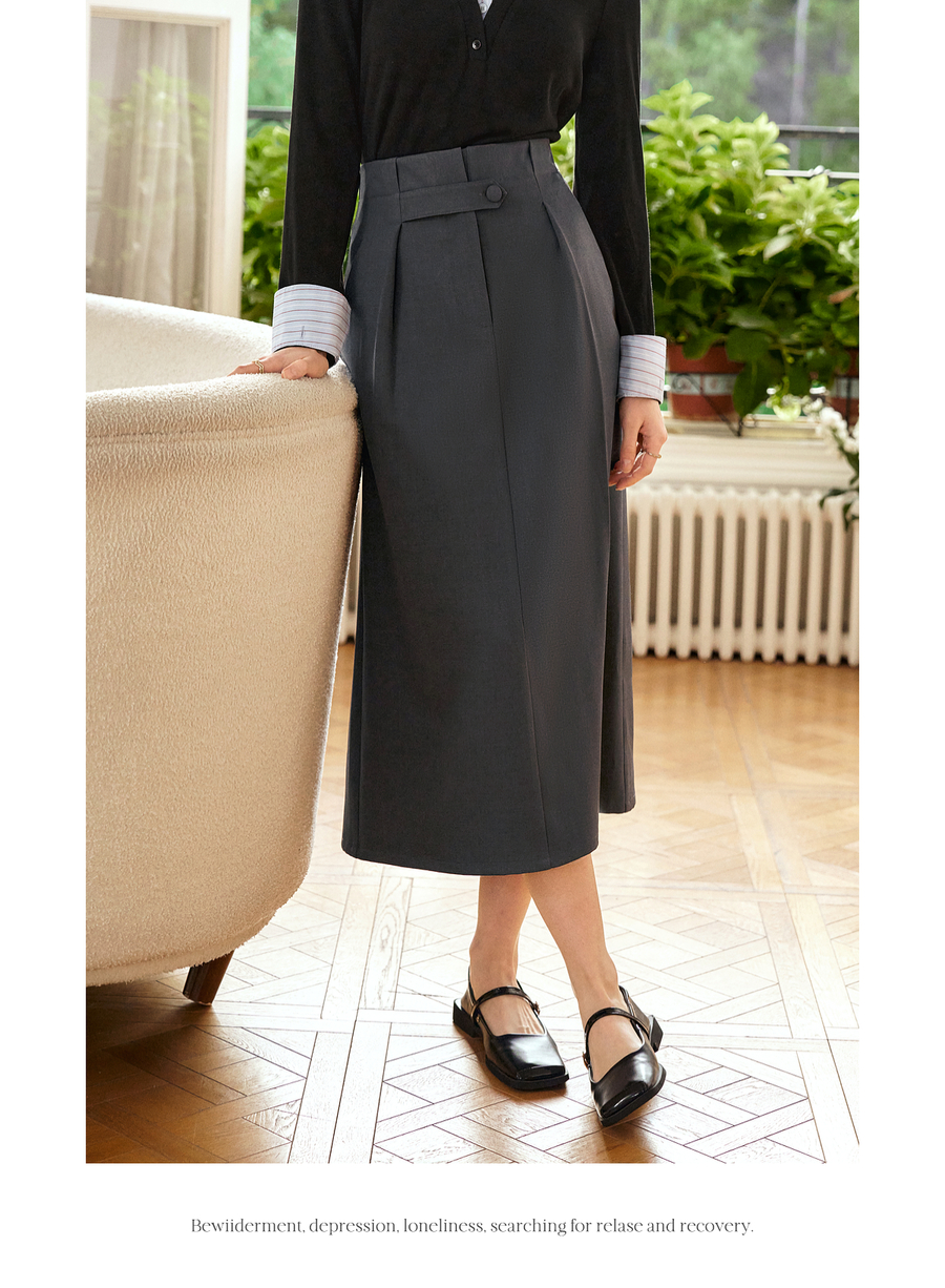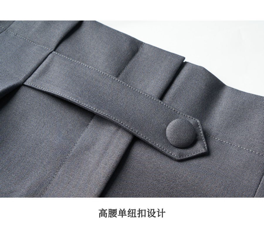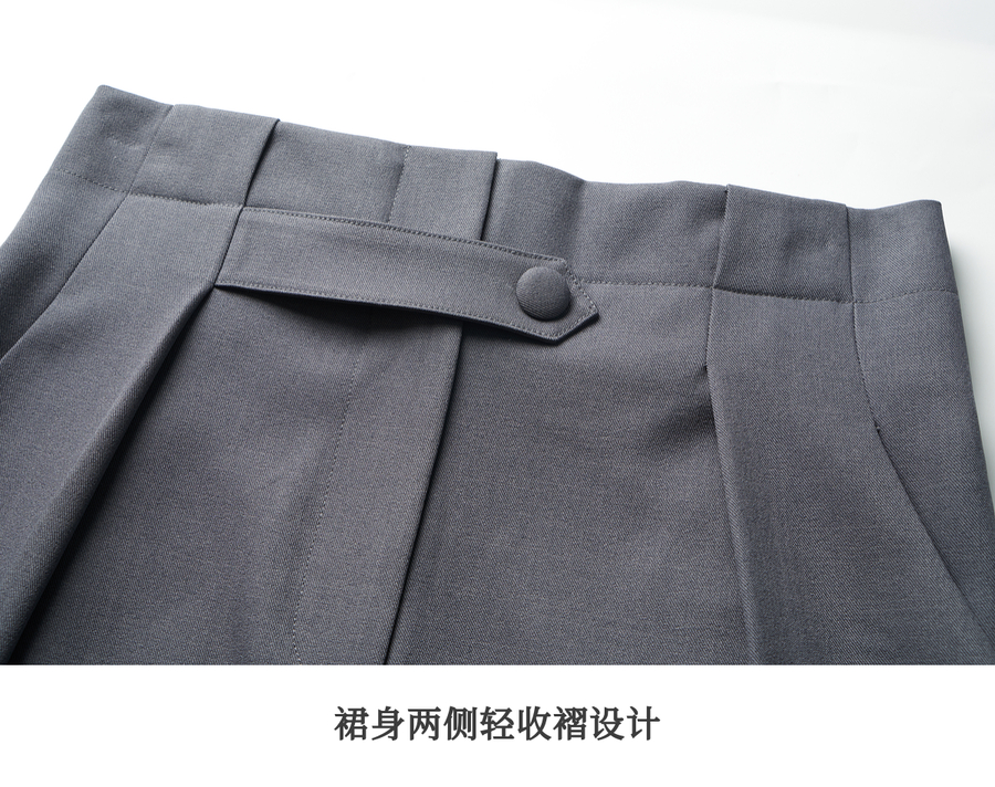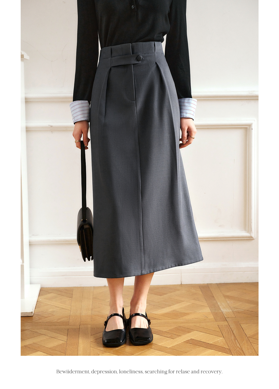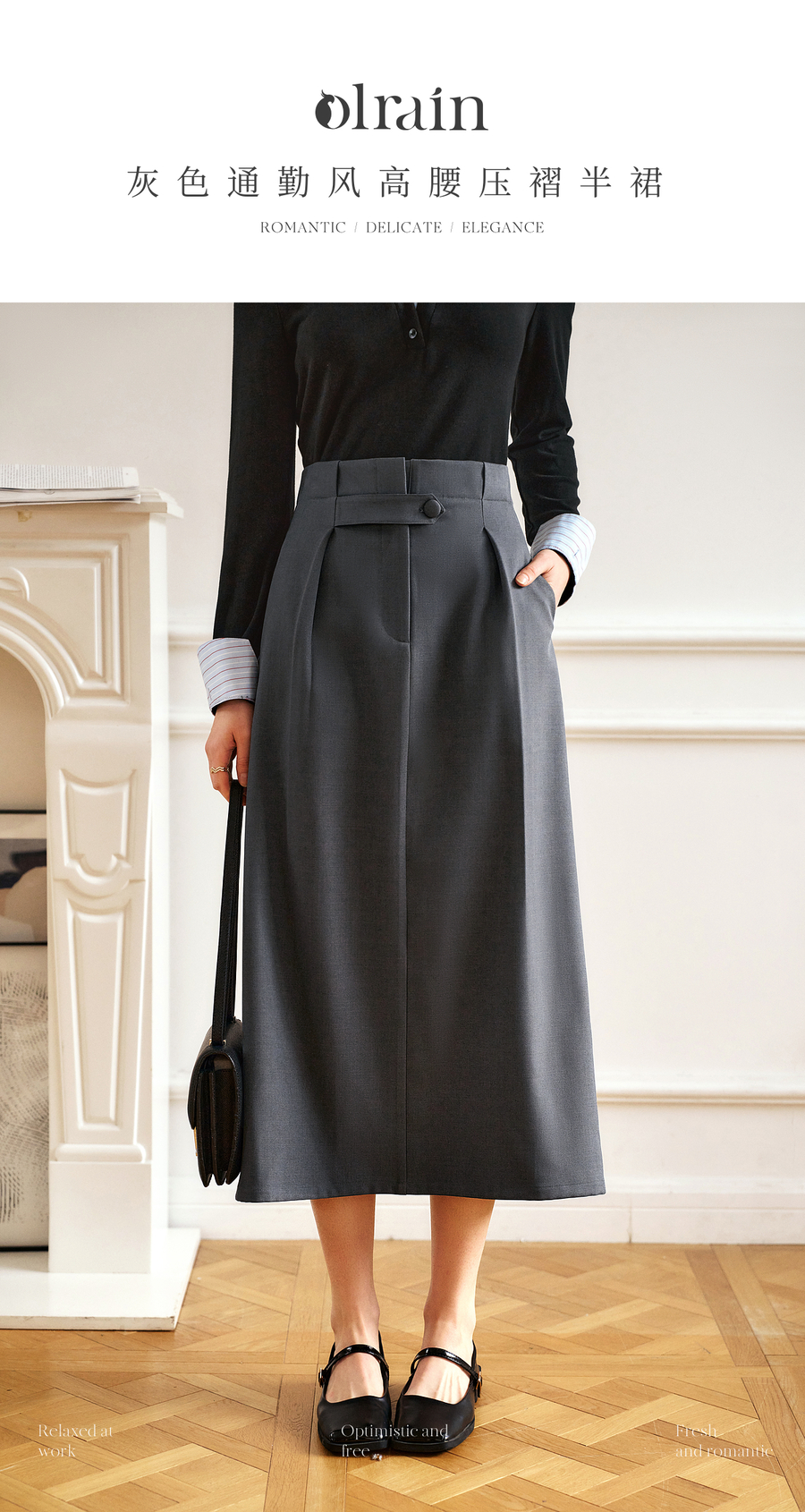 OLrain欧芮儿灰色高腰半身裙女春季2025年新款通勤压褶高级感半裙