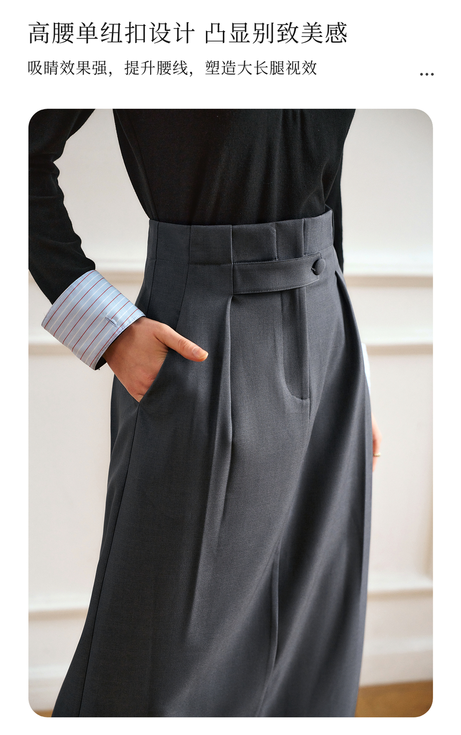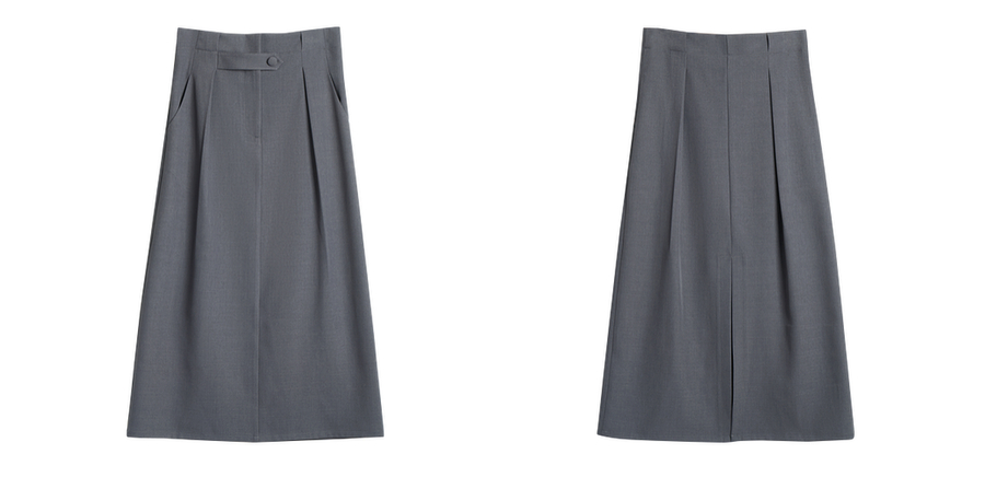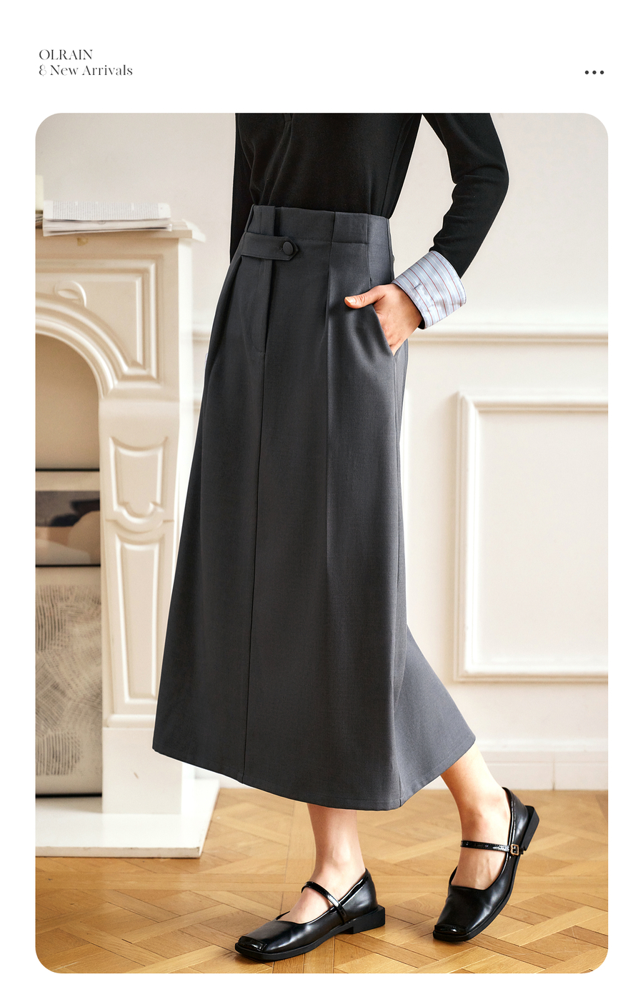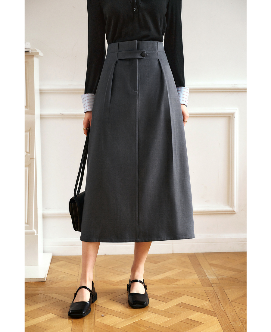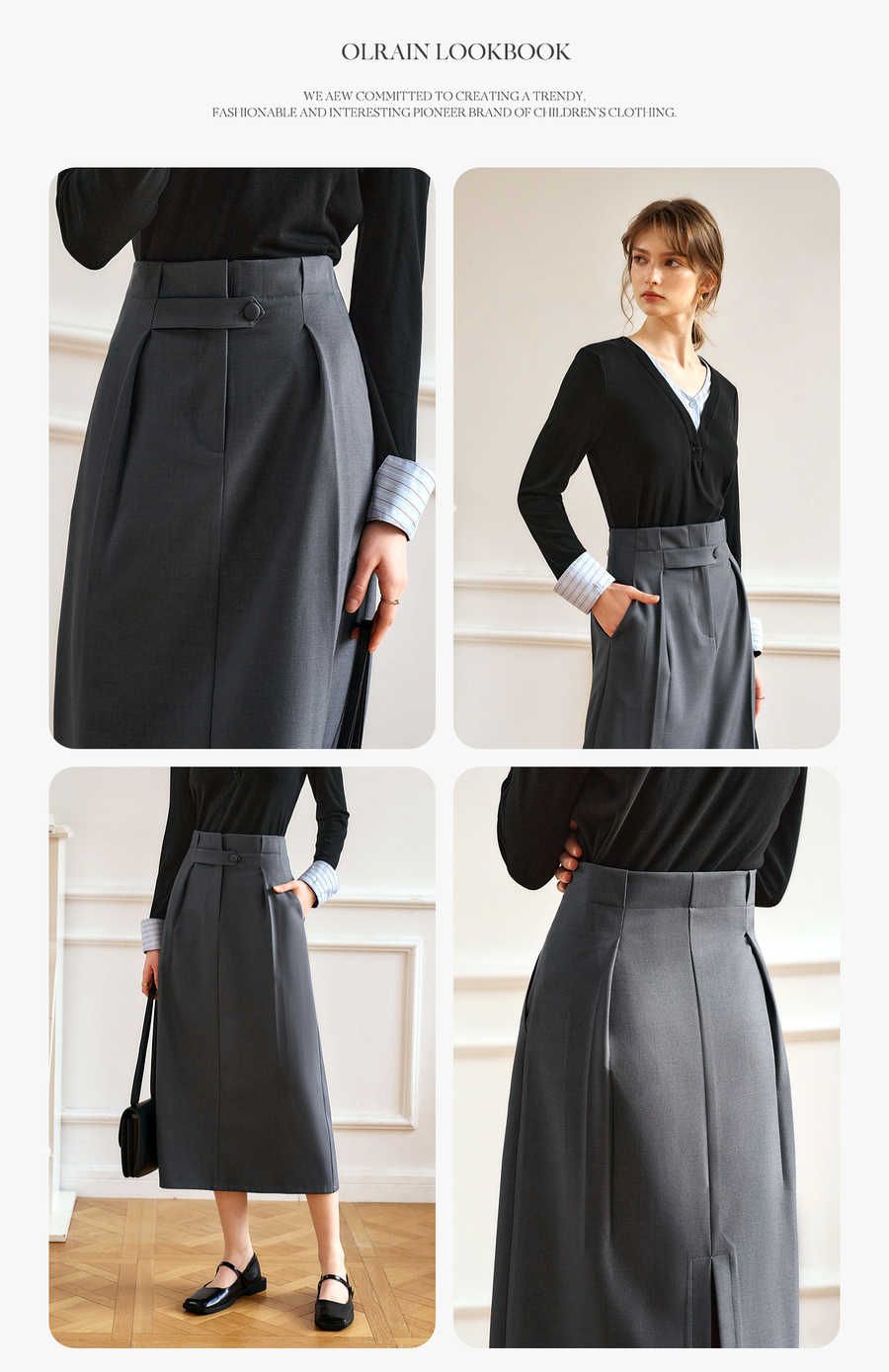 OLrain欧芮儿灰色高腰半身裙女春季2025年新款通勤压褶高级感半裙