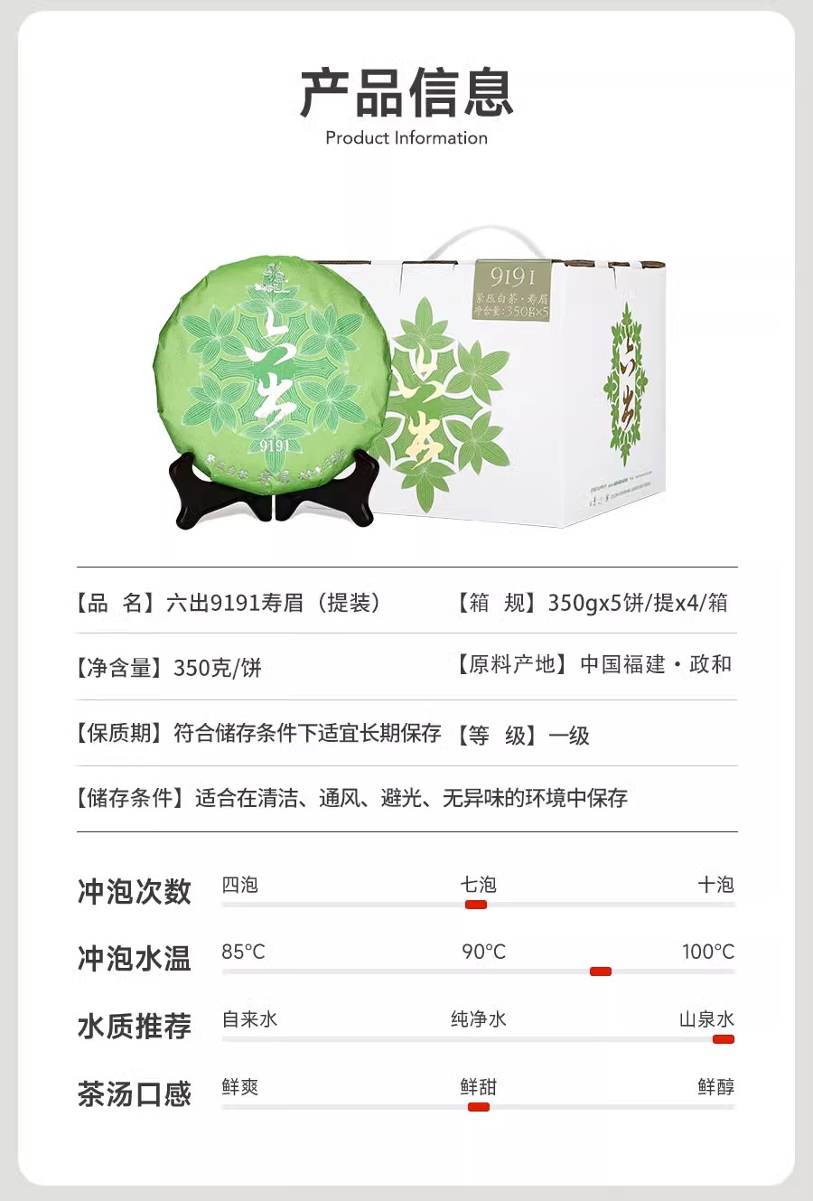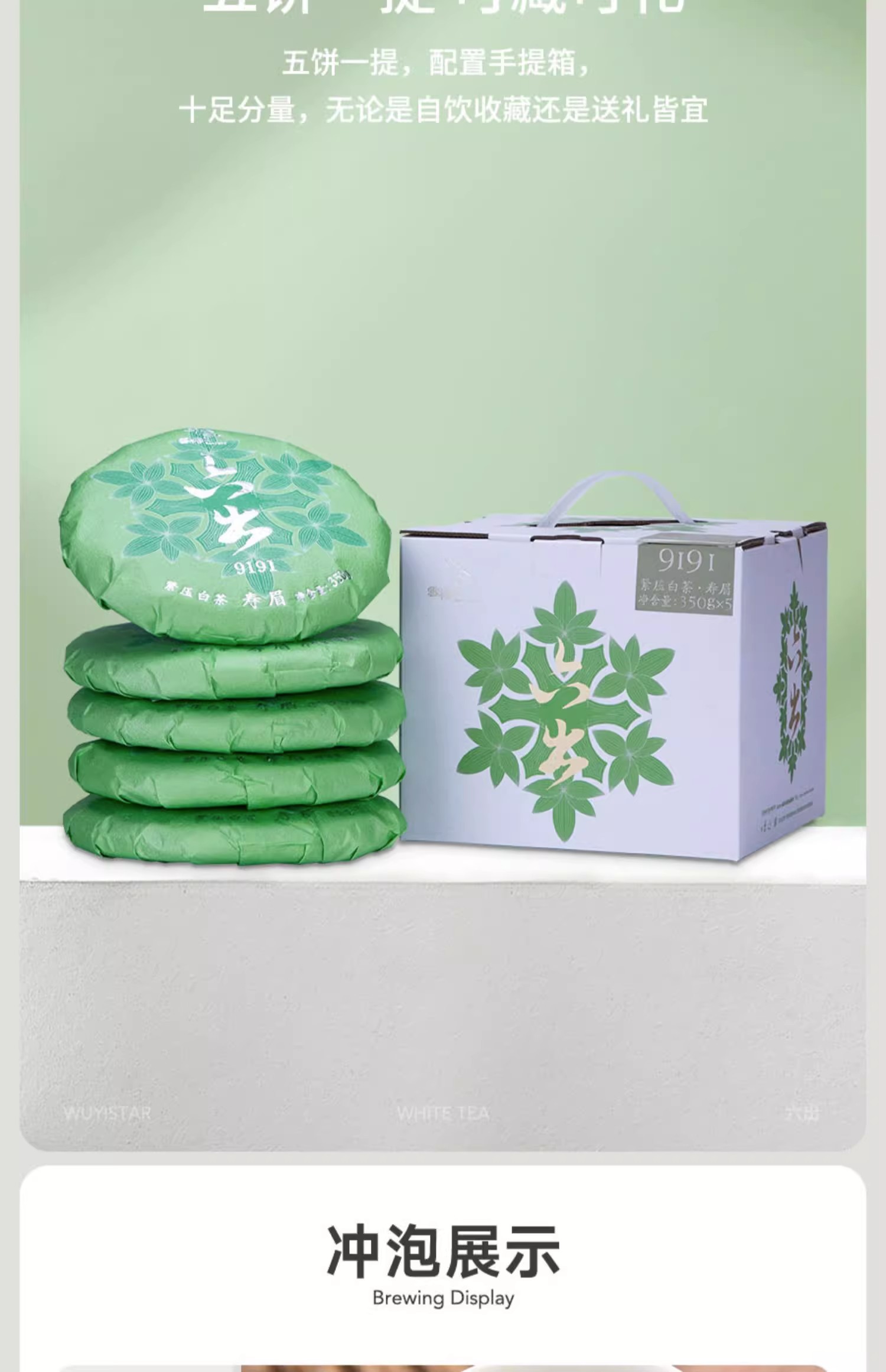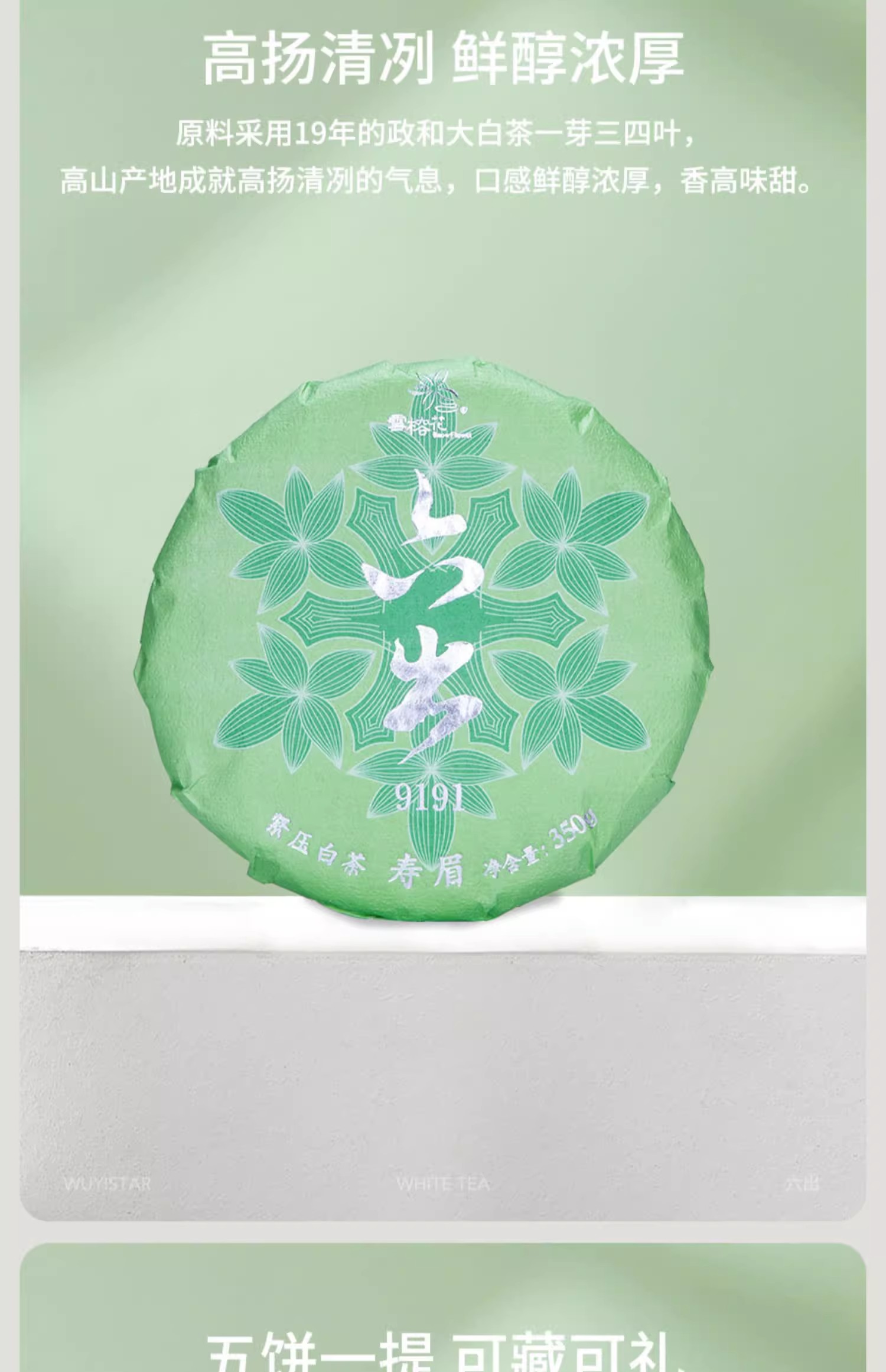 武夷星雪榕花六出9191寿眉白茶政和原料老白茶5饼1提礼盒装白茶饼