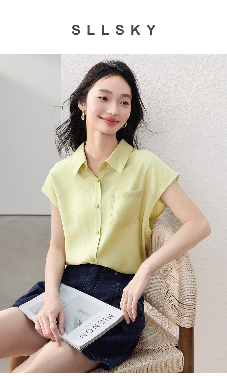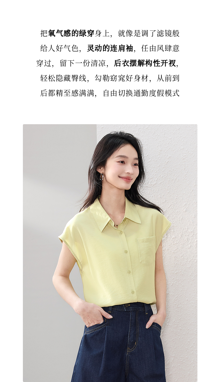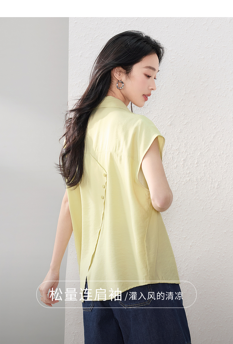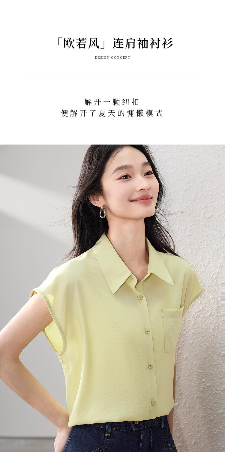 【专属特价】熙世界欧若风连肩袖衬衫女薄款气质通勤衬衣翻领上衣2025夏日新款