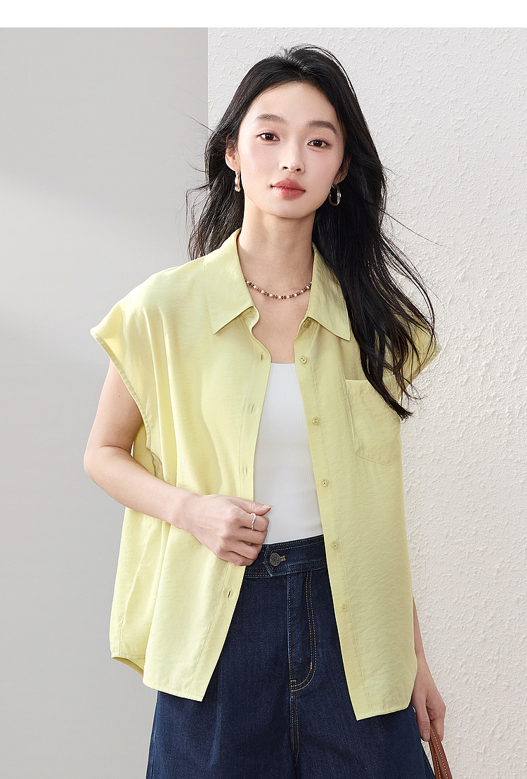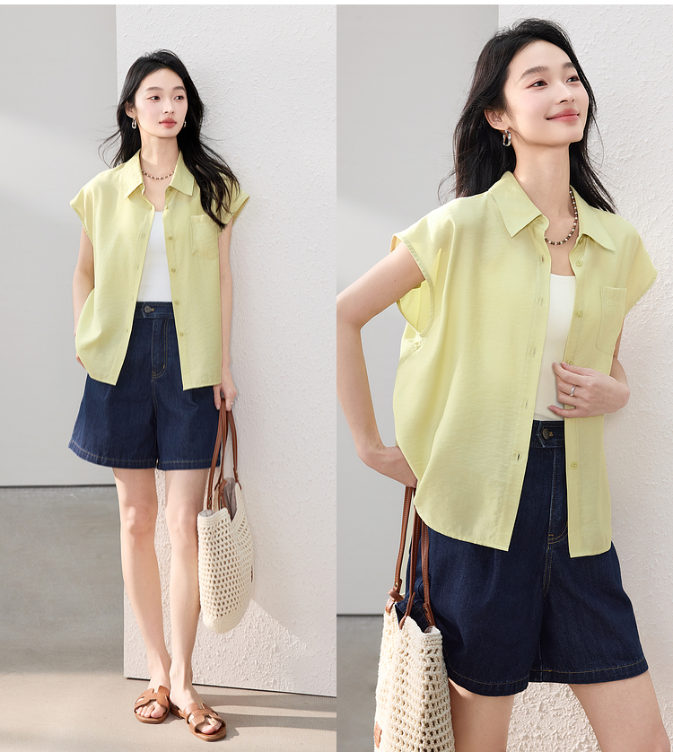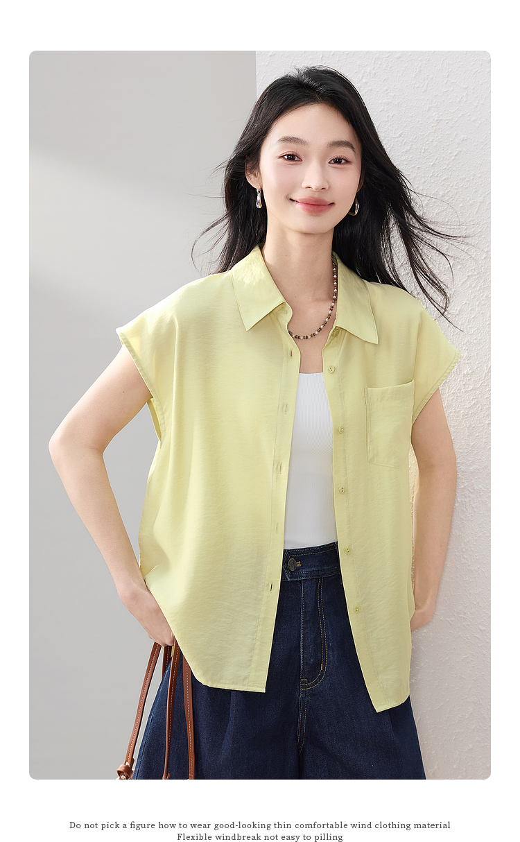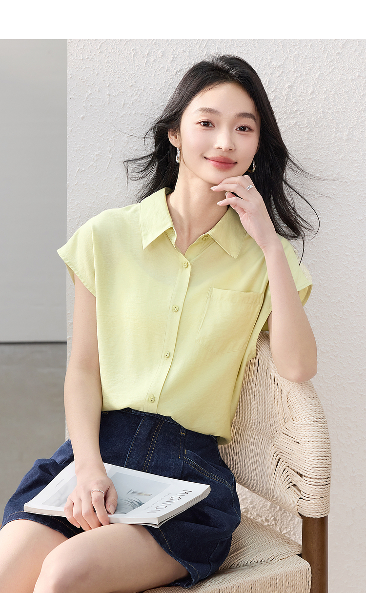 【专属特价】熙世界欧若风连肩袖衬衫女薄款气质通勤衬衣翻领上衣2025夏日新款