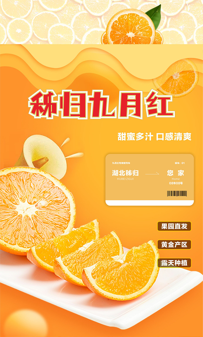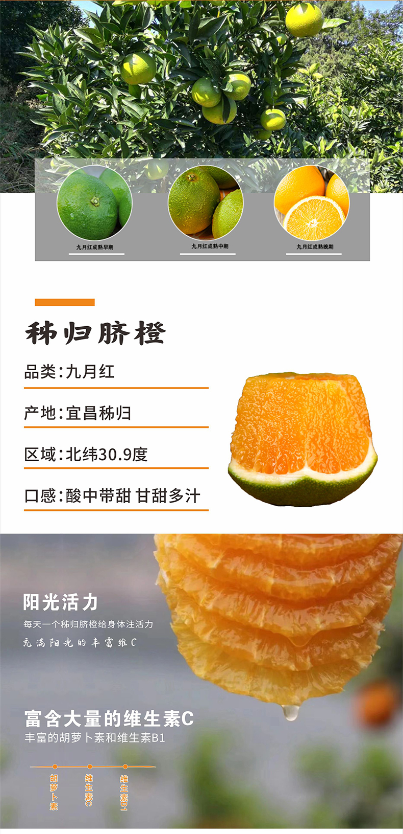 【严选】屈姑秭归现摘现发九月红脐橙带箱5斤/9斤彩箱装 (厂家直发)