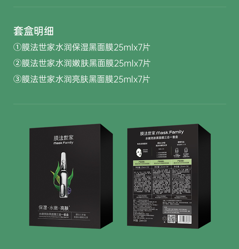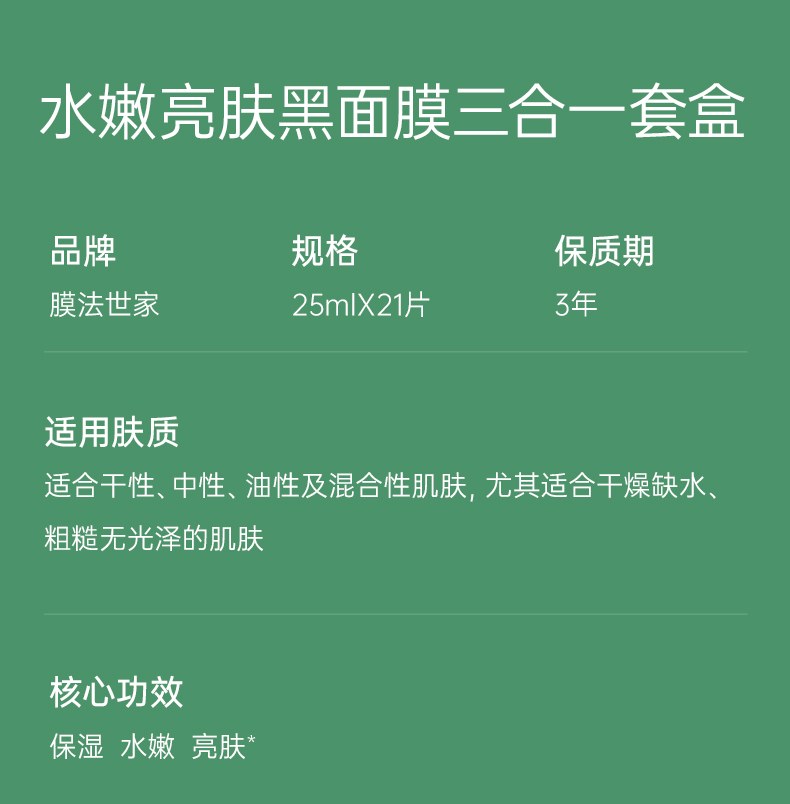 【100膜币+39元】膜法世家水嫩亮肤黑面膜三合一套装21片装
