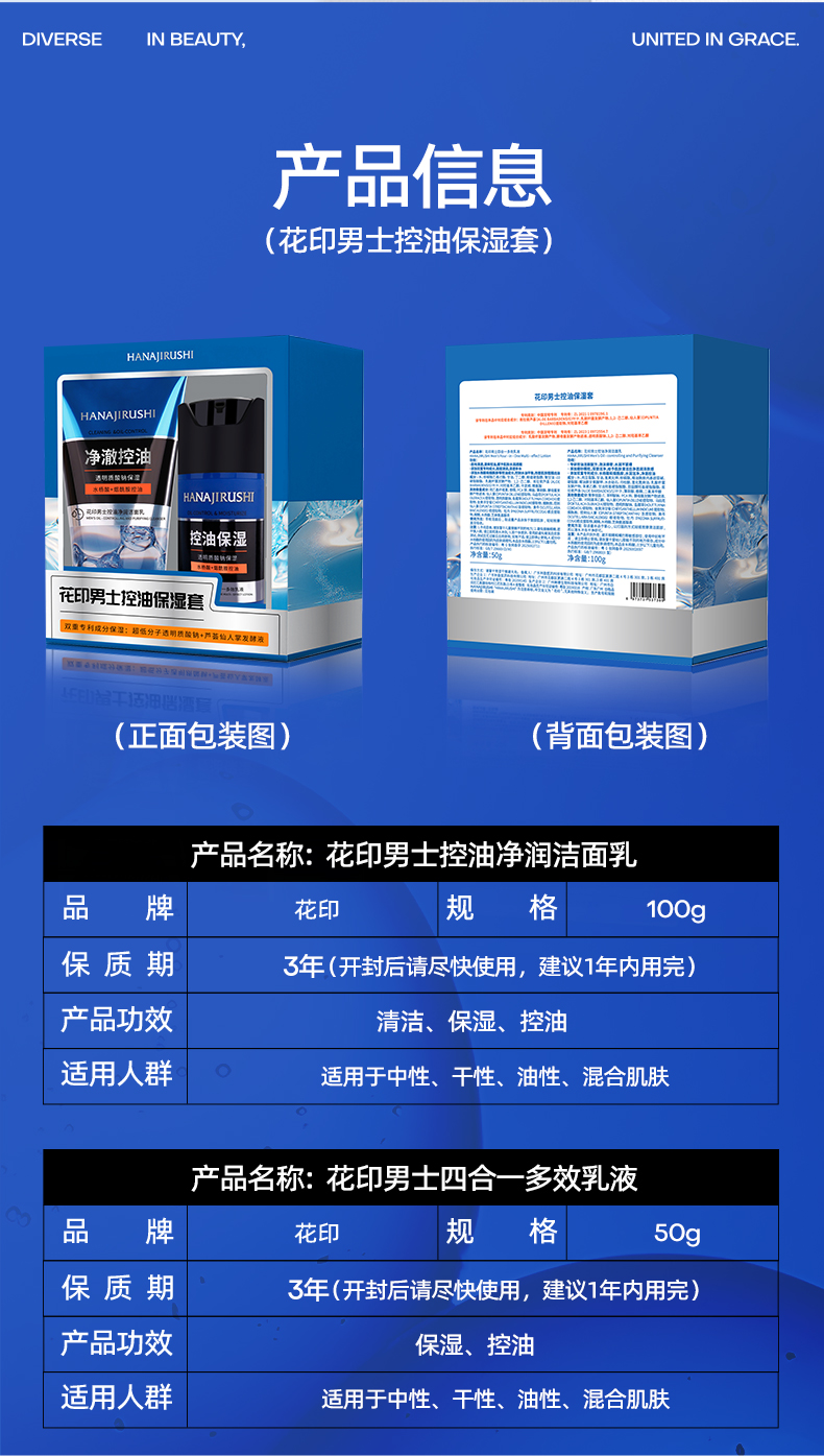 花印男士护肤套组(多效乳50g+洁面乳100g)