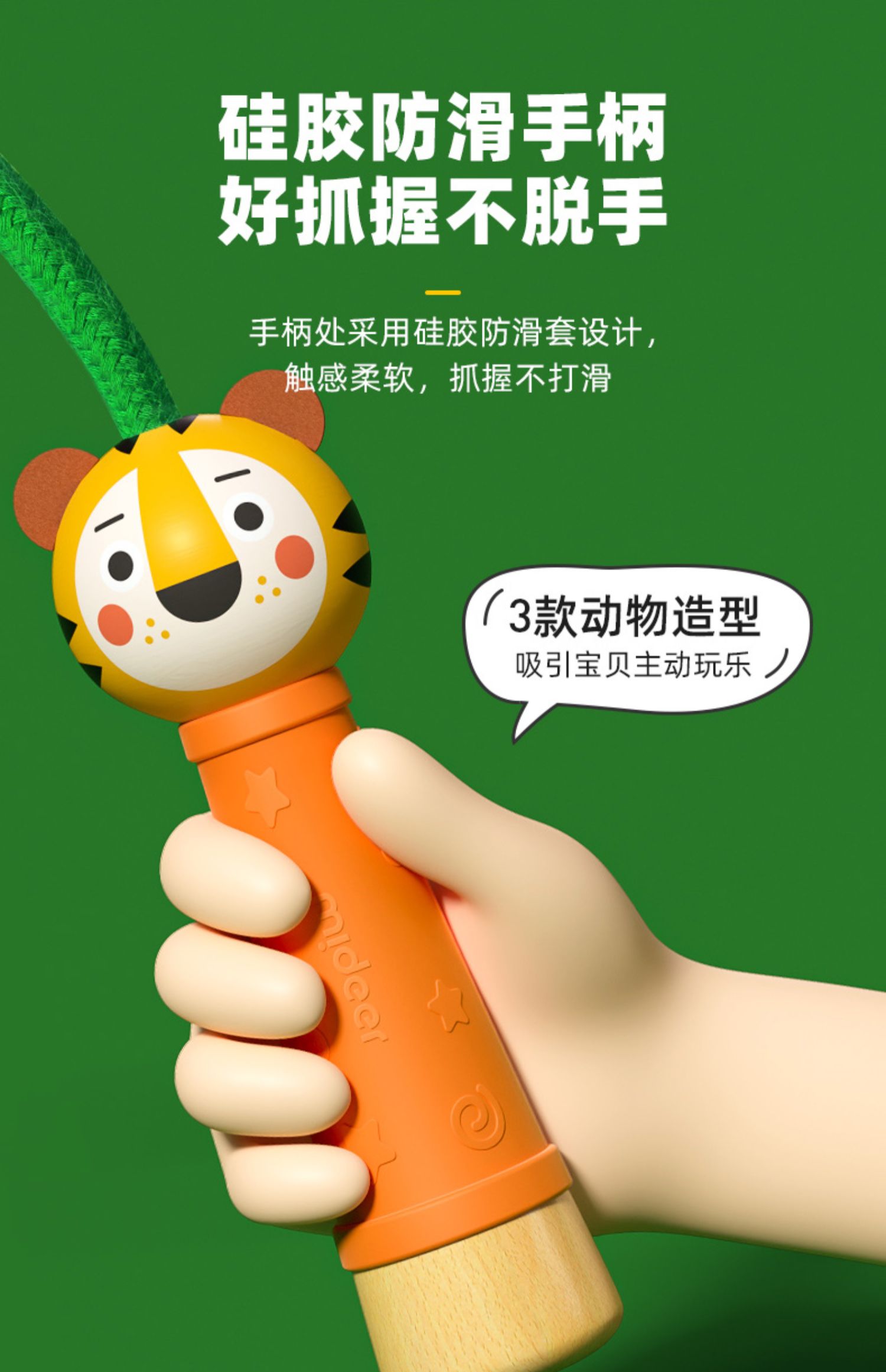 mideer弥鹿跳绳幼儿园小学生运动训练体育课木制手柄棉绳考试专用