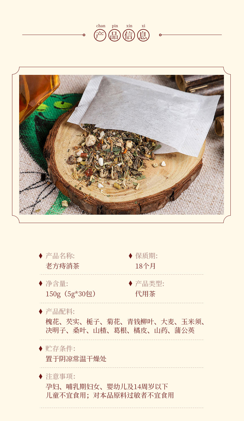 【老方传承缓解痔疮】老方痔消茶 痔疮疼痛肛门坠胀 便血肛裂内痔外痔混合痔 草本内调茶痔疮茶150g/盒