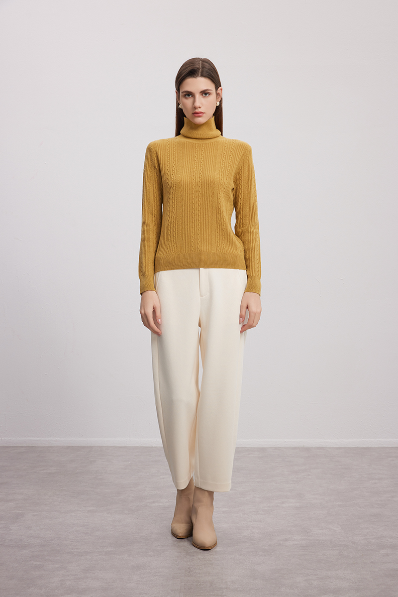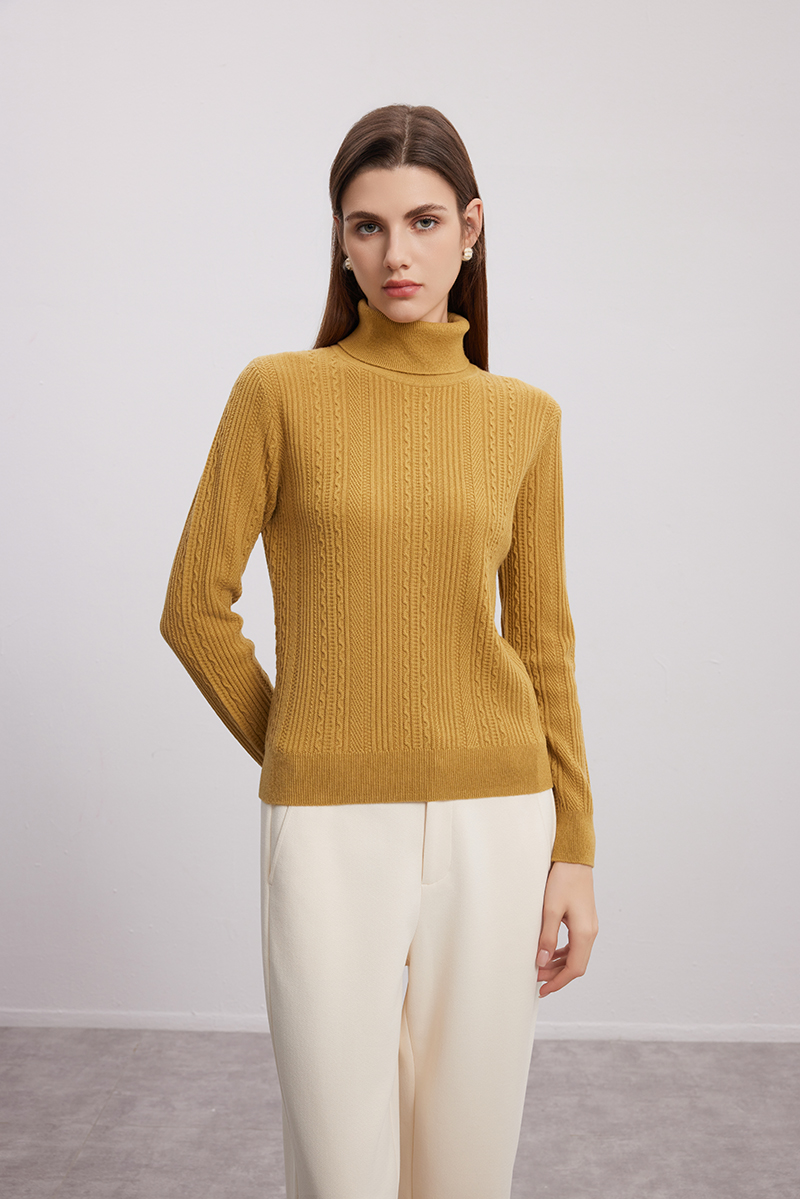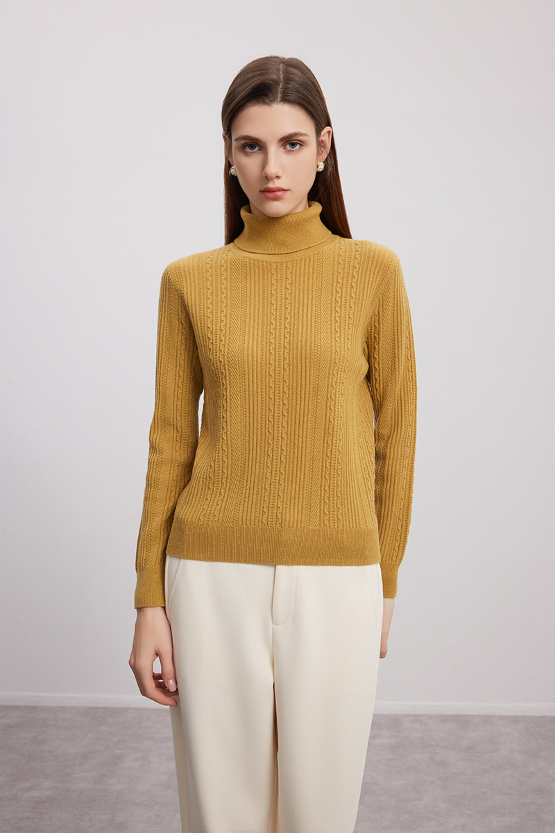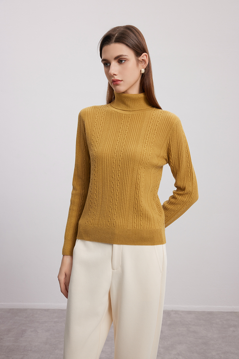 【高领绞花羊绒衫】羊绒世家秋冬女士新品100%山羊绒绞花保暖毛衣