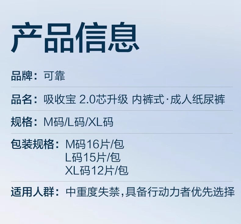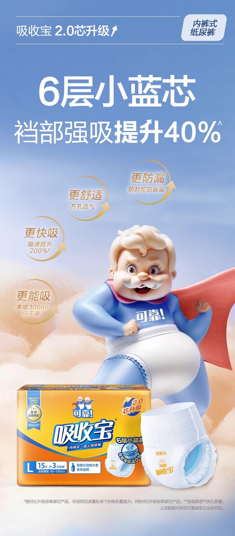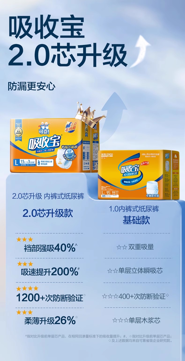 【活动奖品】吸收宝2.0通用型纸尿裤/拉拉裤L码 2片试用装