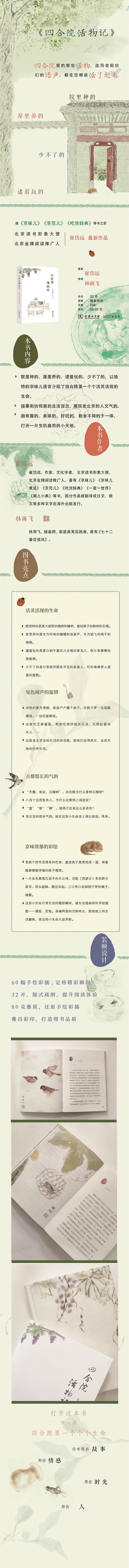 院里种的、屋里养的、逮着玩的、少不了的,以独特的京味儿语言介绍了四合院里一个个灵性的自然生命。
