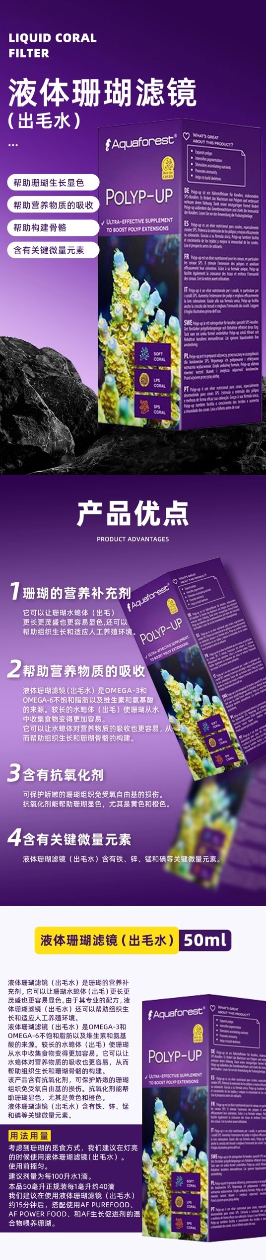 波兰aquaforest 紫色森林珊瑚出毛水 炸毛水 液体珊瑚滤镜