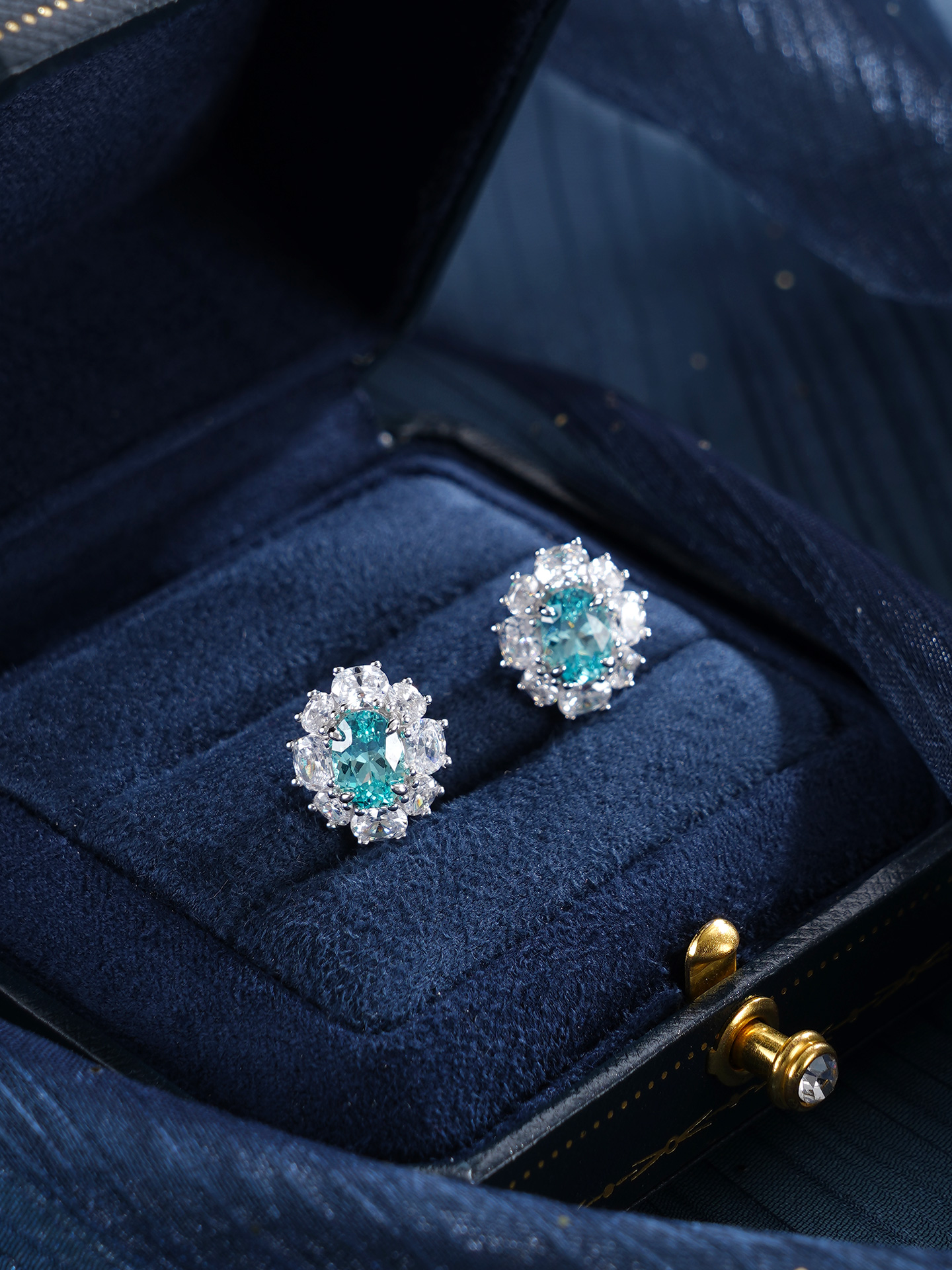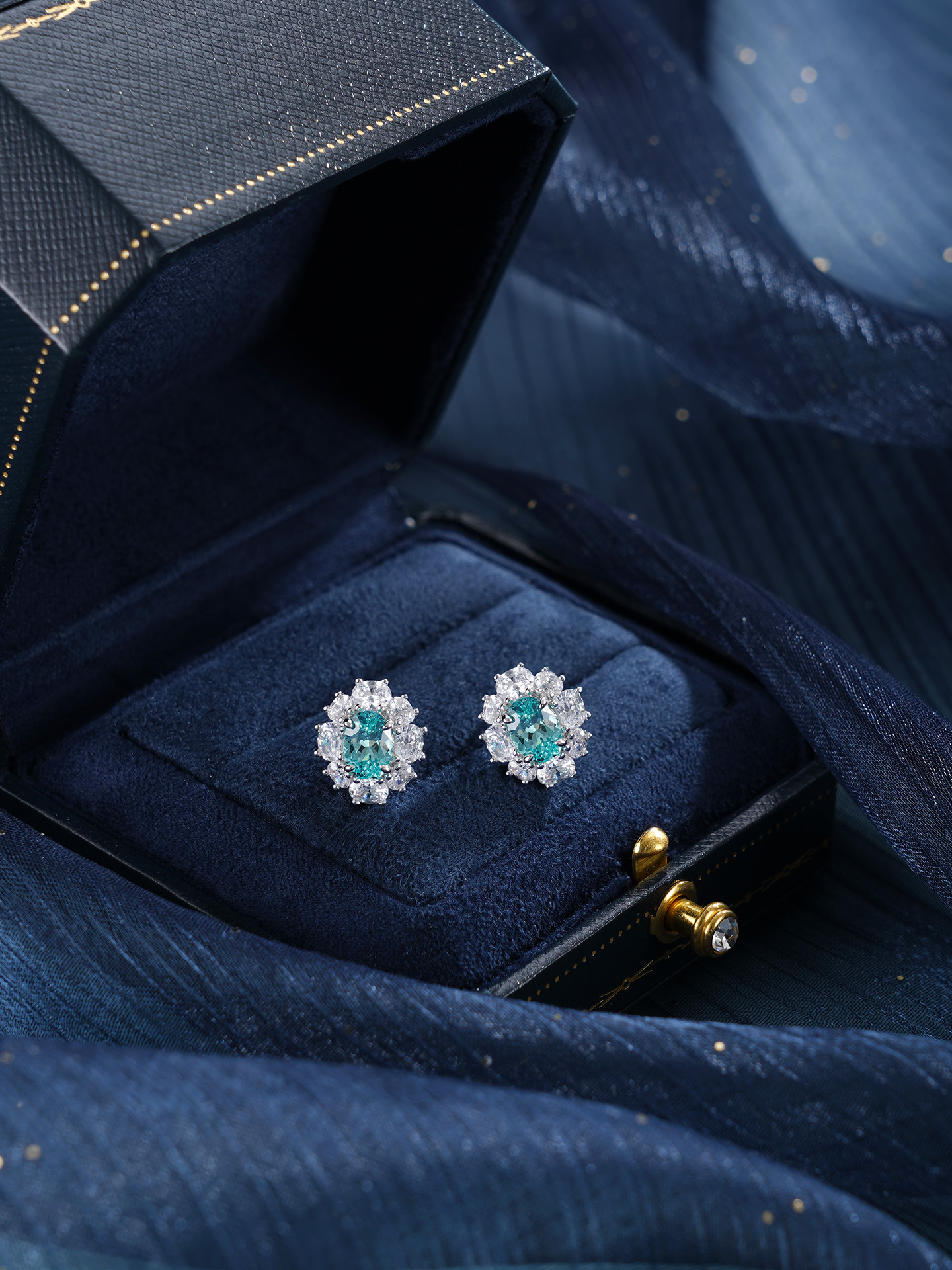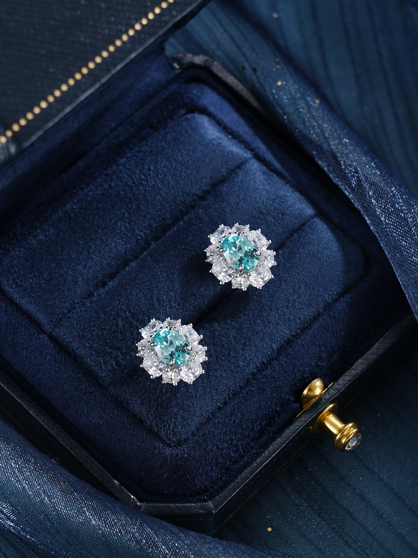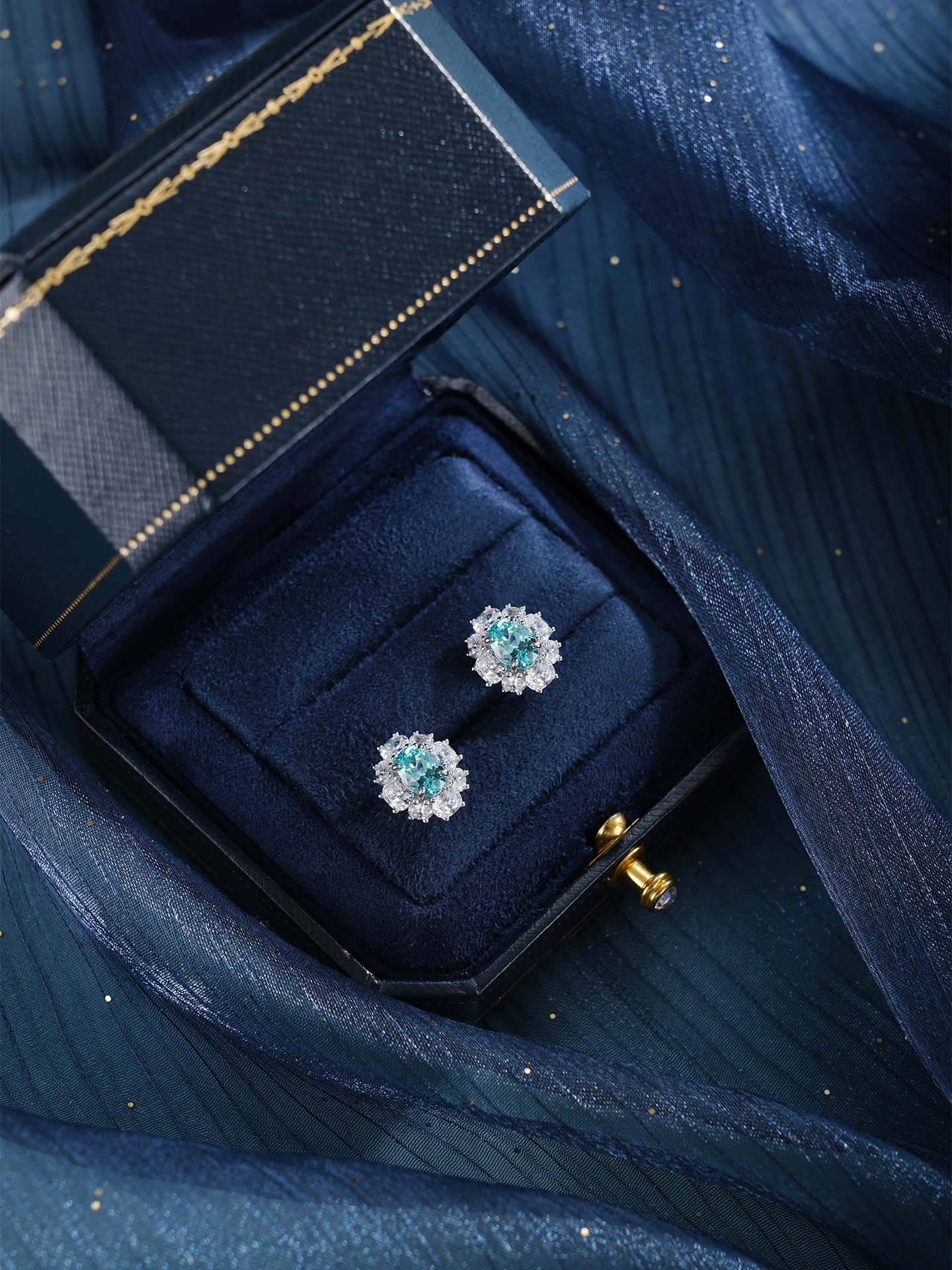 子佩集【蔚蓝花海】S925银耳钉【EM3050-XF】培育宝石帕拉伊巴蓝碧玺椭圆2510