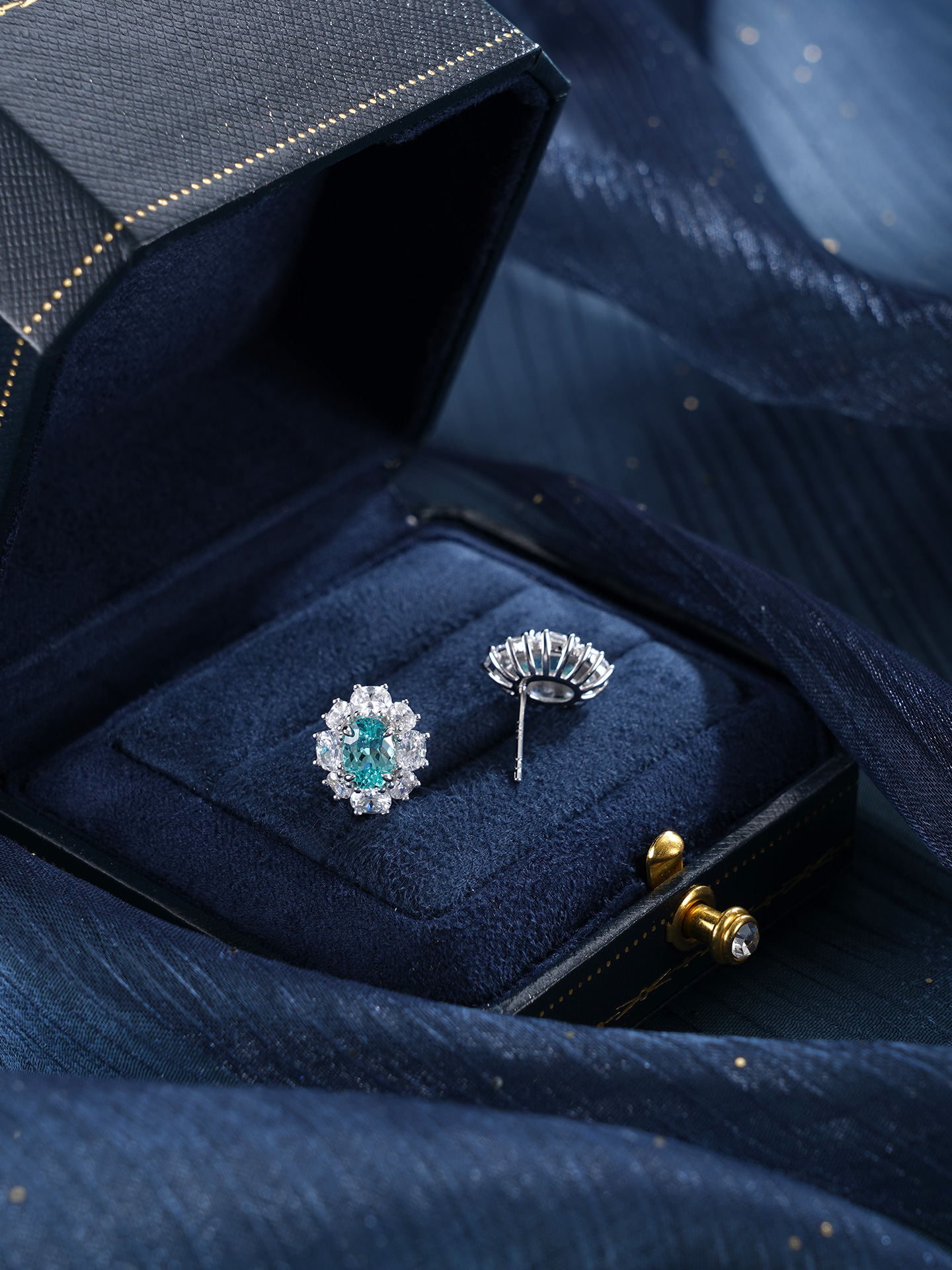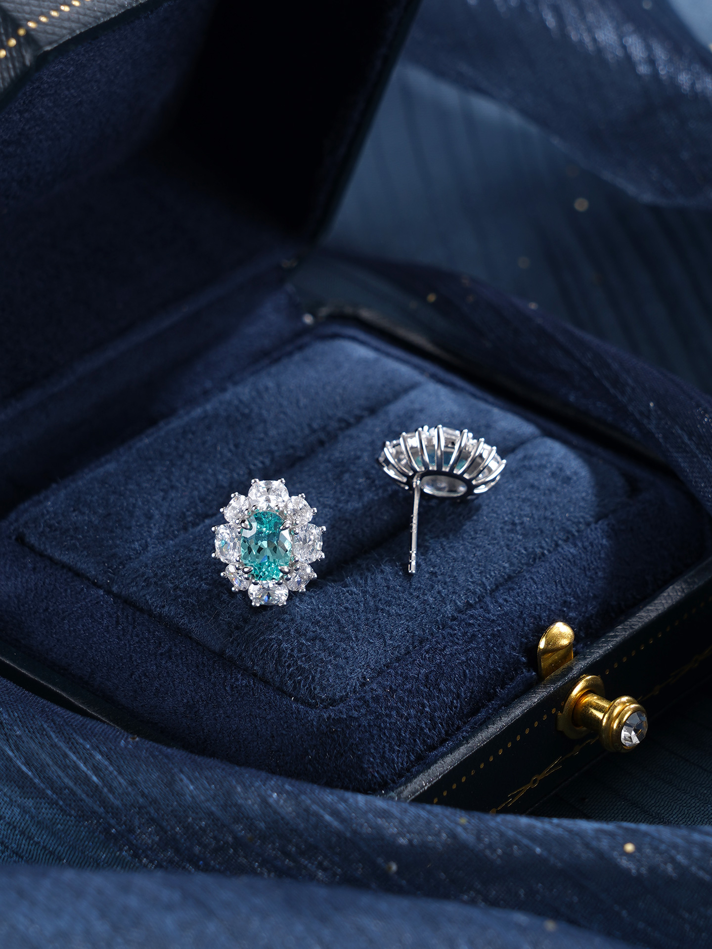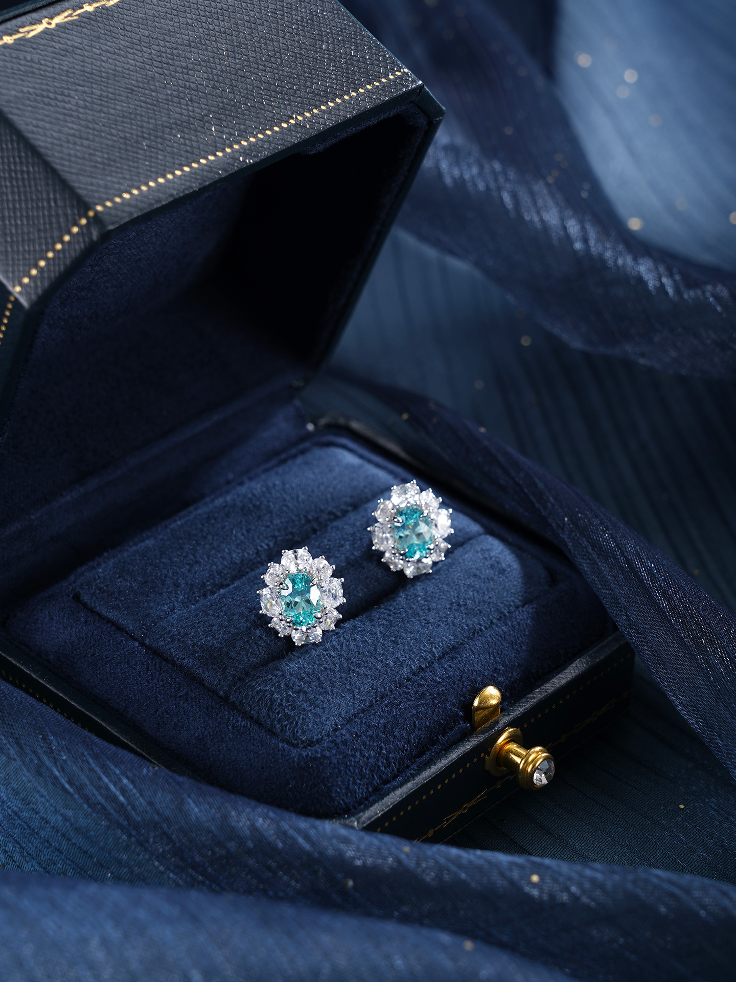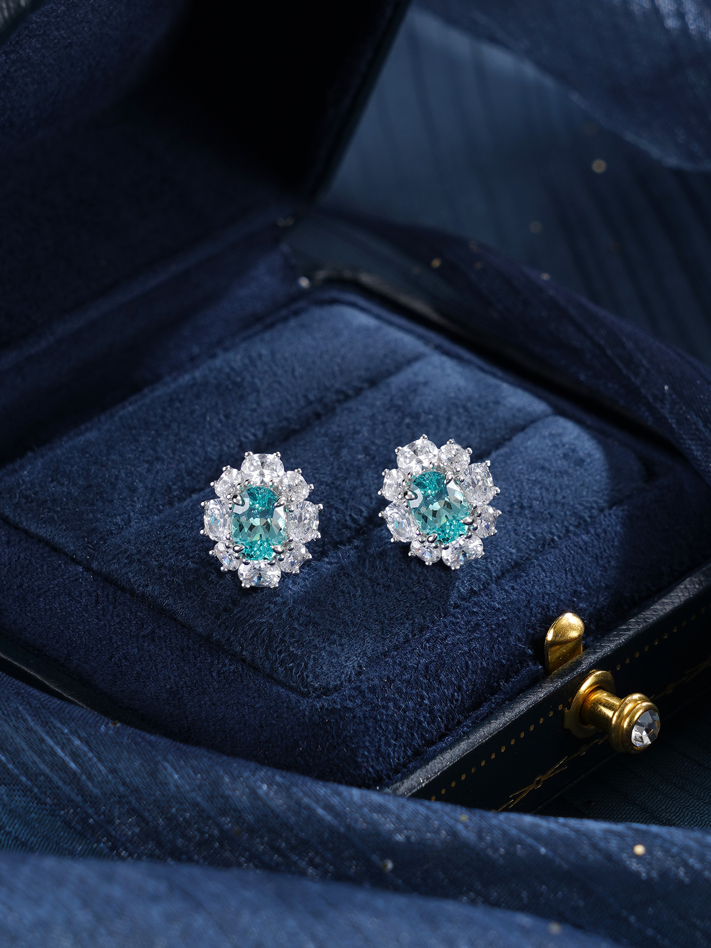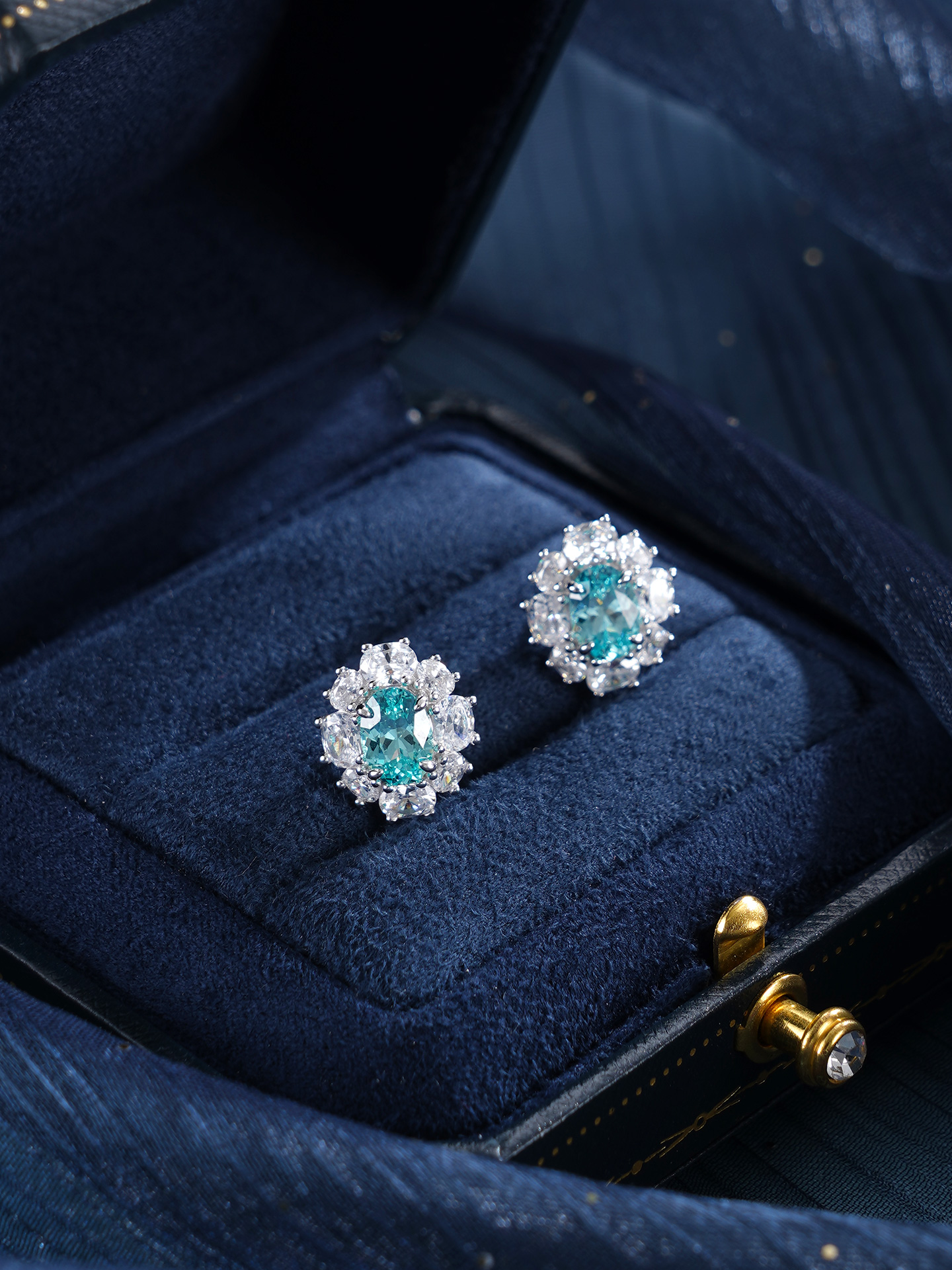 子佩集【蔚蓝花海】S925银耳钉【EM3050-XF】培育宝石帕拉伊巴蓝碧玺椭圆2510