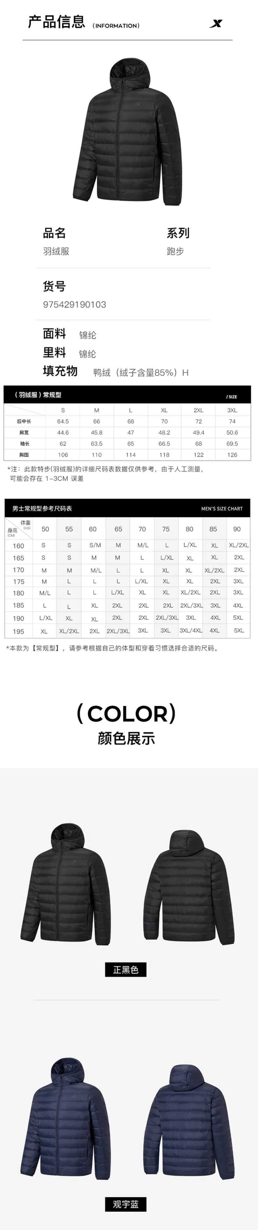 特步轻薄羽绒服男2025年冬新款鸭绒运动上衣保暖外套975429190103