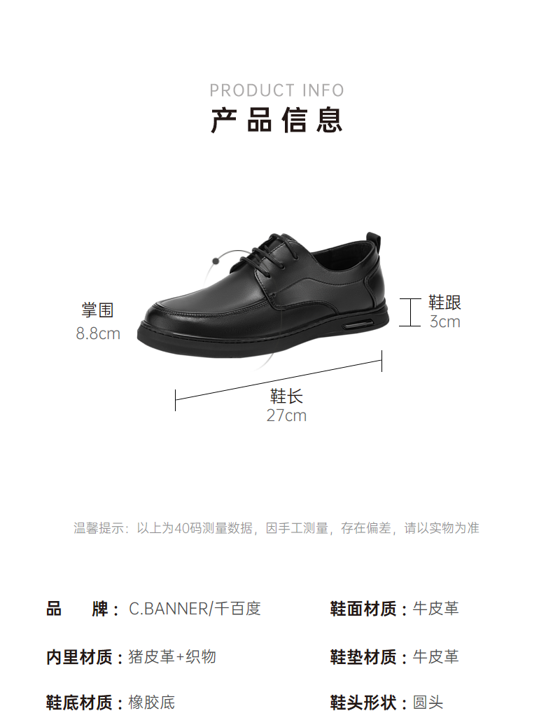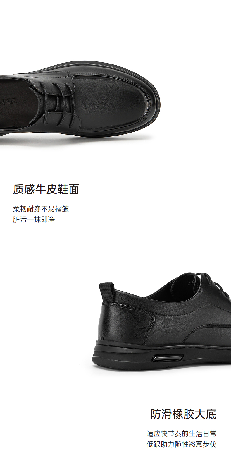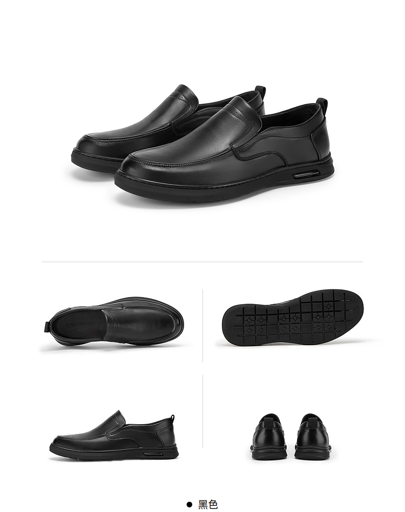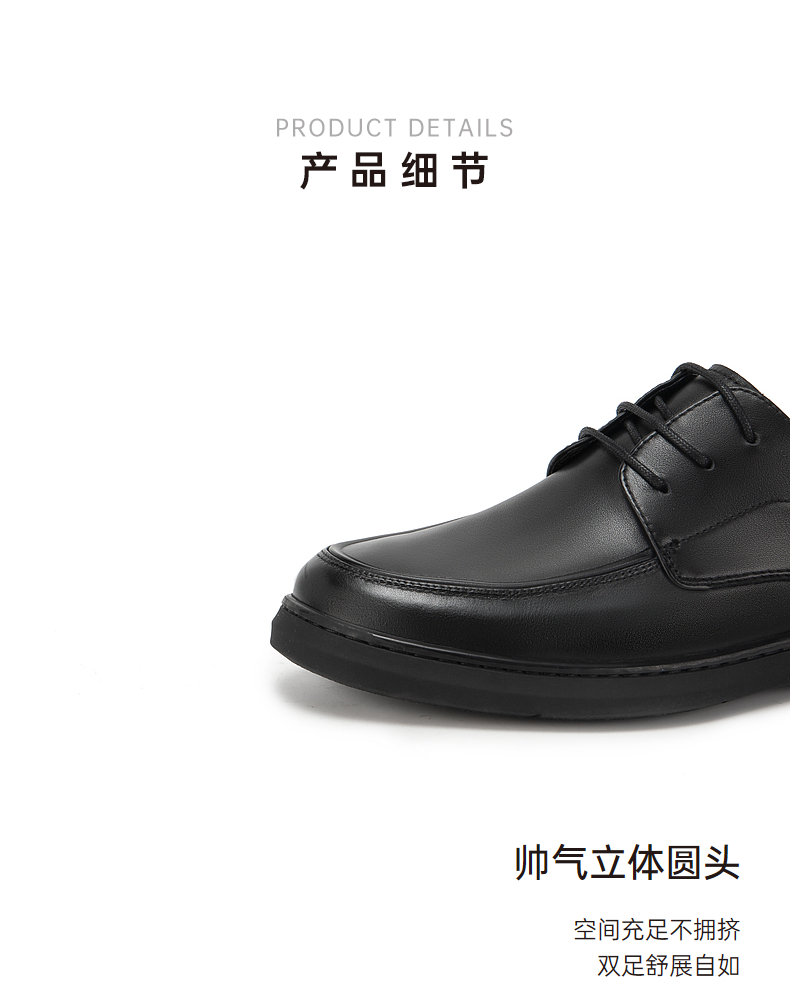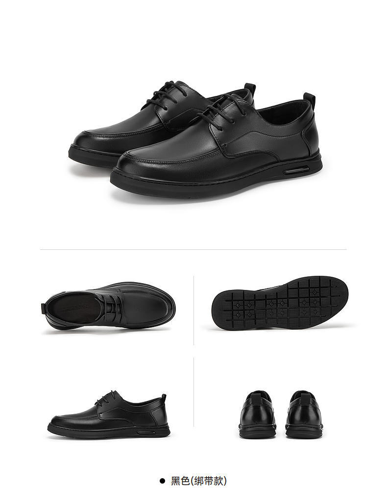 千百度男鞋春季正装男士商务休闲皮鞋黑色真皮通勤英伦风A24132925