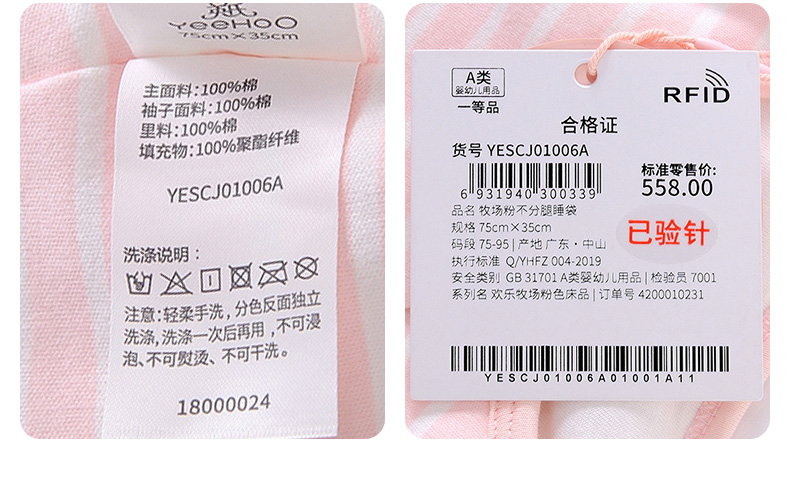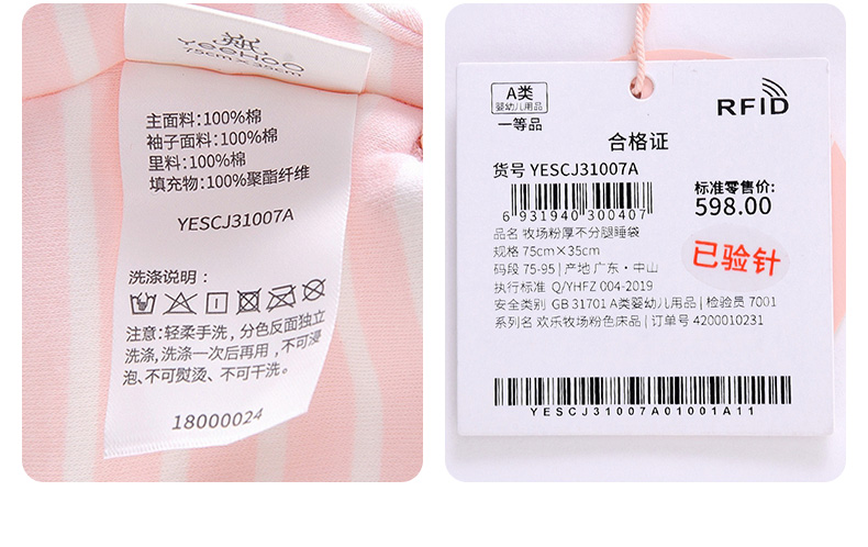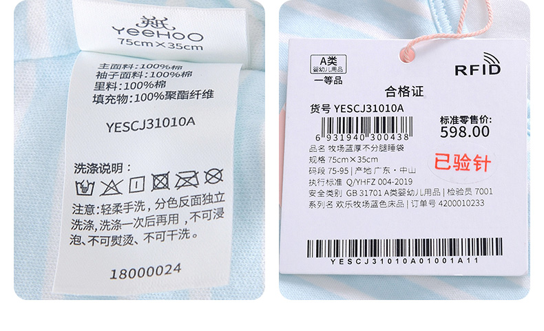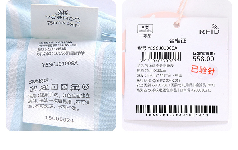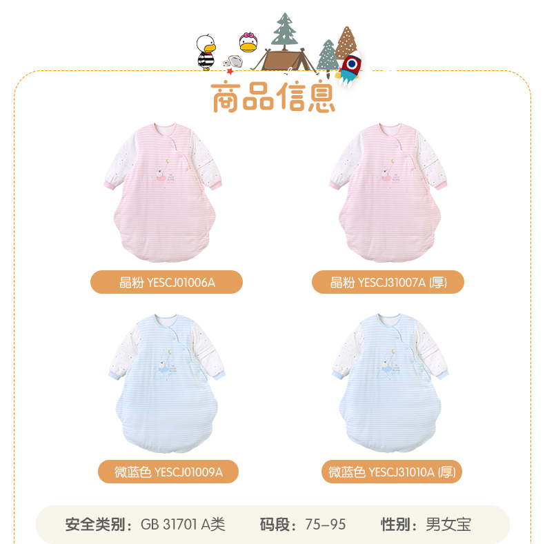 英氏初生婴儿睡袋不分腿长袖防踢被YESCJ01007A YESCJ01009A