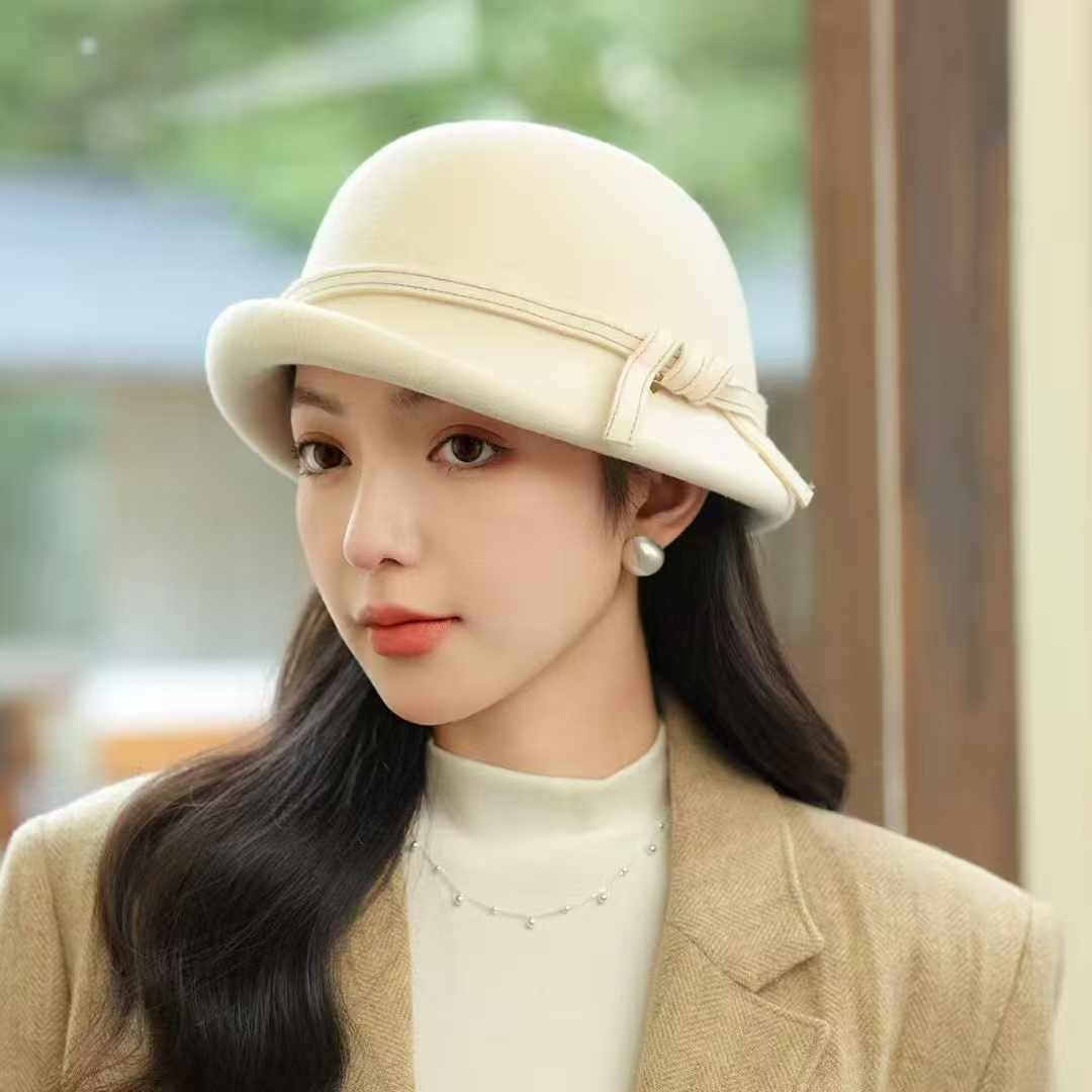 紫宝半翘简约蝴蝶结毡帽AYXM250751-11-00