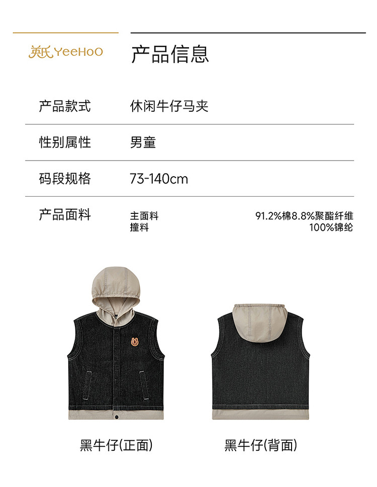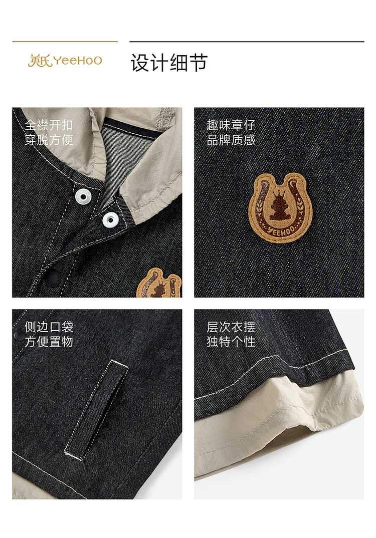 英氏儿童马甲男童假两件连帽春夏新款背心外套帅气YRWJJ1S008A