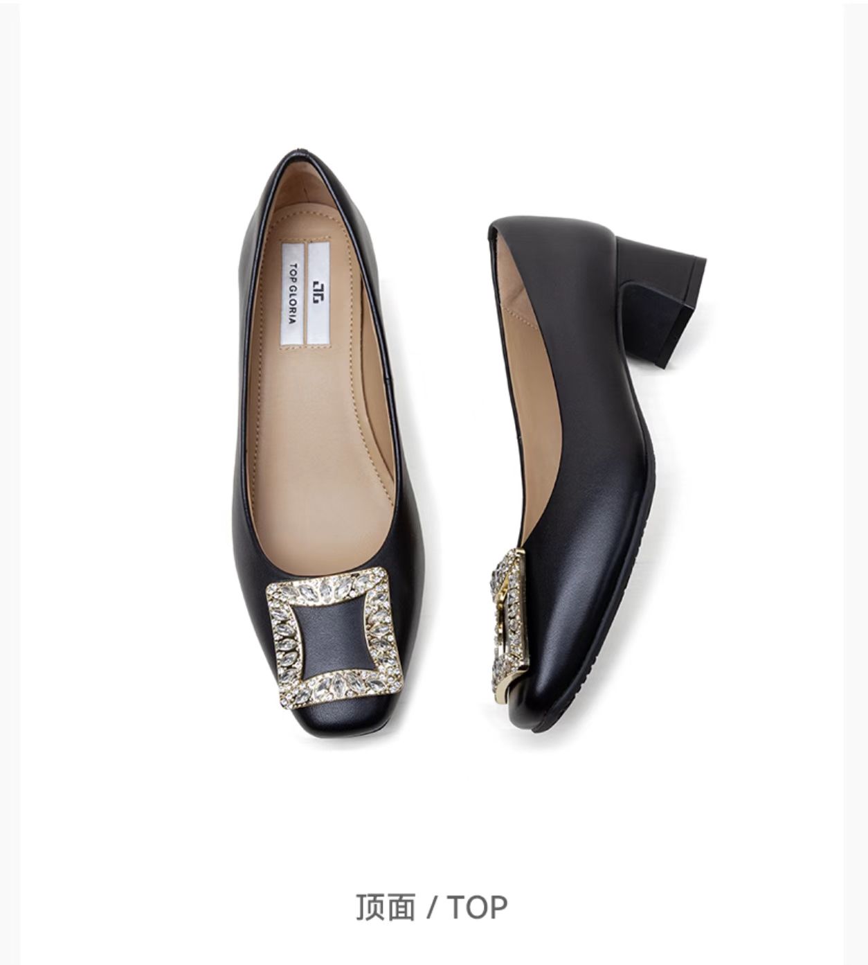 【春假专区】汤普TOPGLORIA女鞋仙女风别致方钻粗跟单鞋400050S