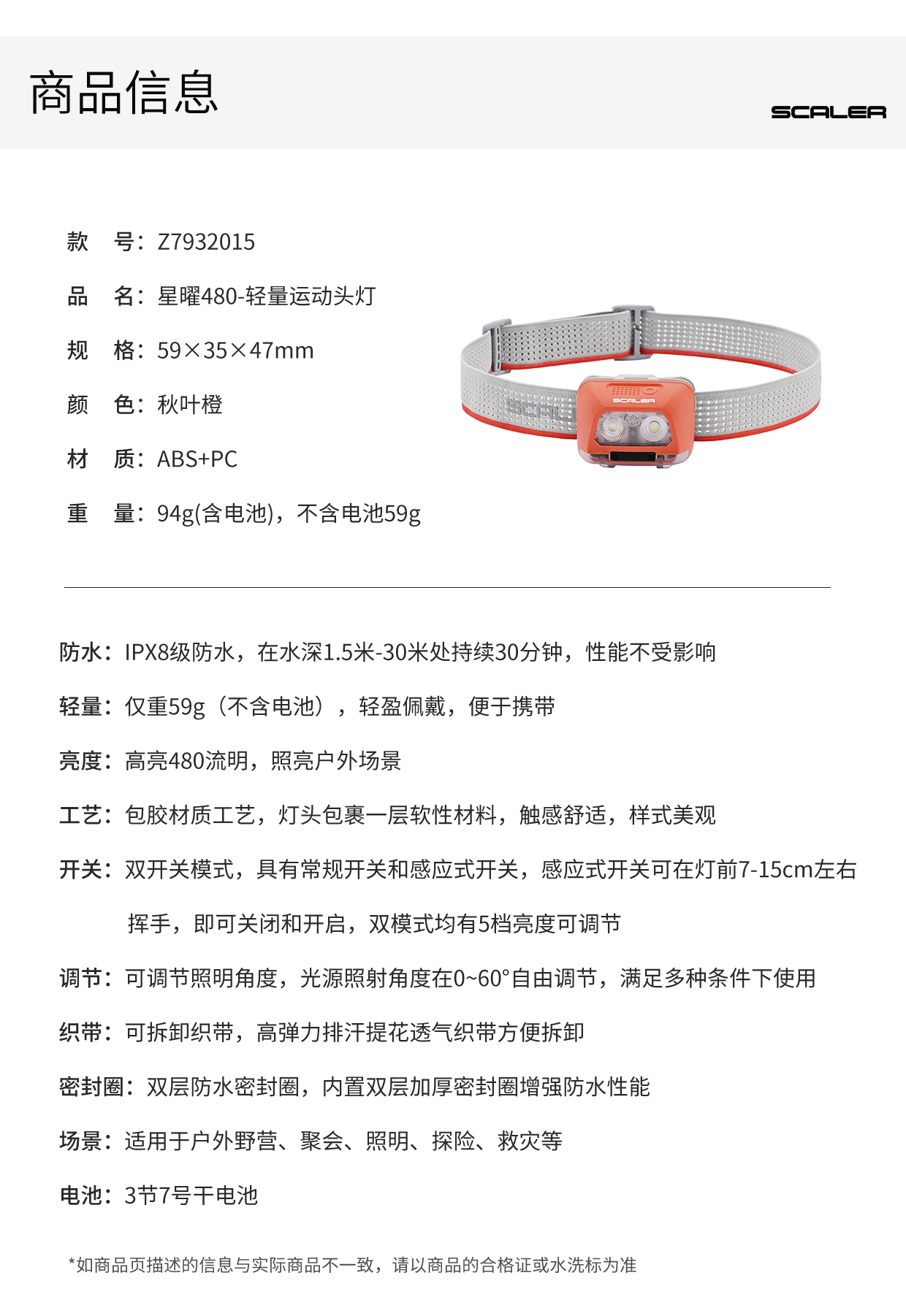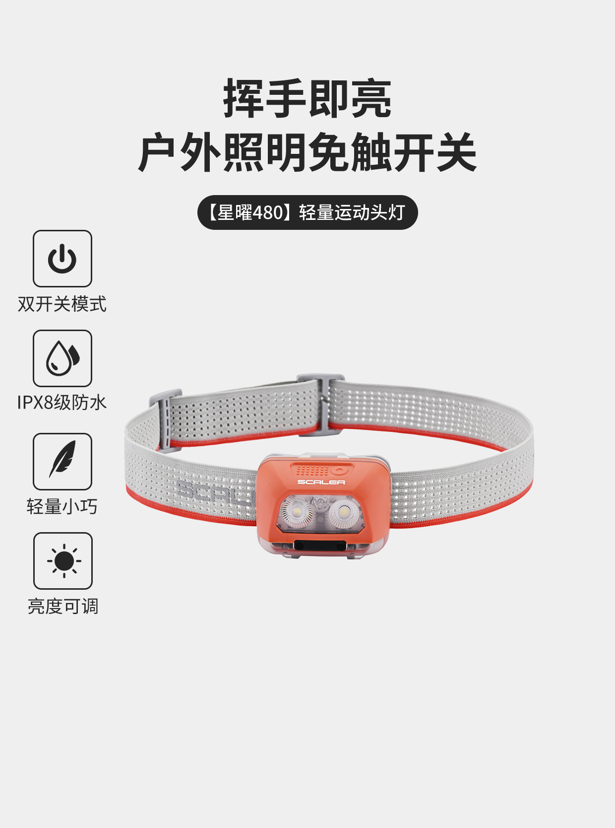 +【乐粉专属】SCALER/思凯乐星耀480-轻量运动头灯户外免触开关防水Z7932015