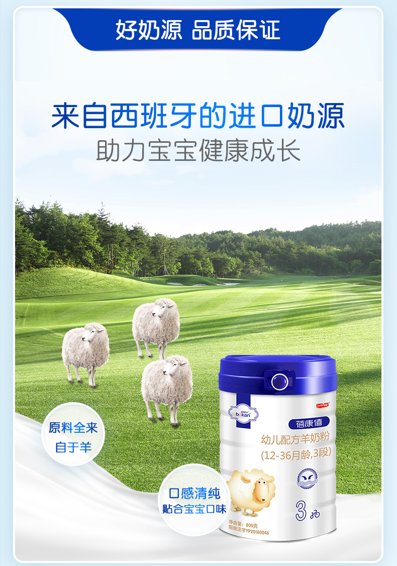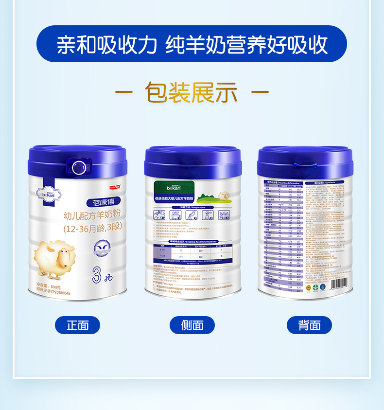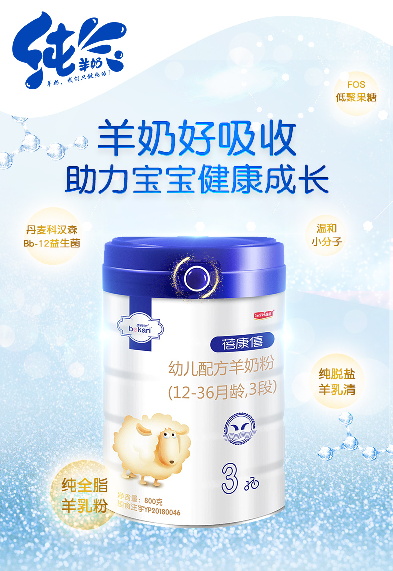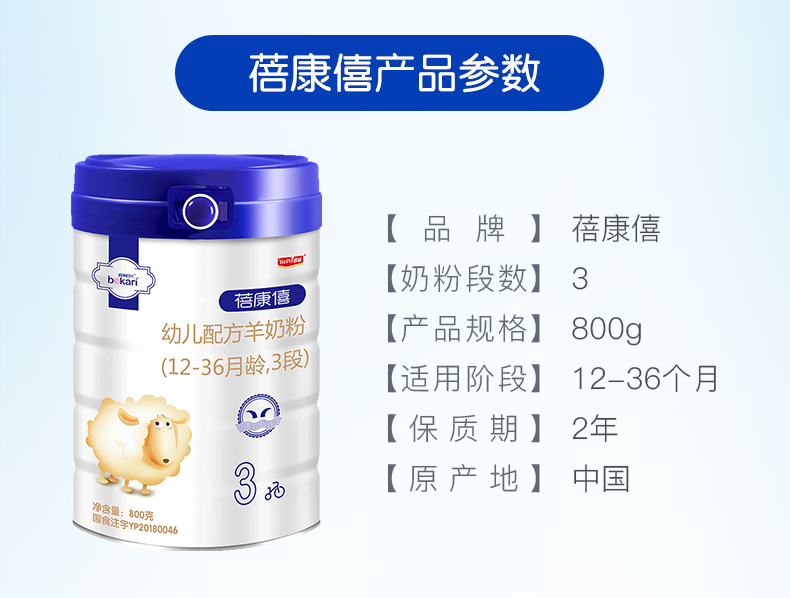 蓓康僖(bekari)纯绵羊奶粉 3段(1-3岁适用)幼儿配方羊奶粉 800g*6罐套装【蓓康僖】