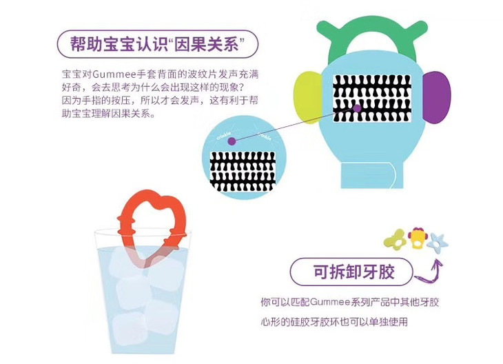 【双十二】Gummee Glove婴儿牙胶手套 防掉落宝宝无毒硅胶安抚玩具牙胶