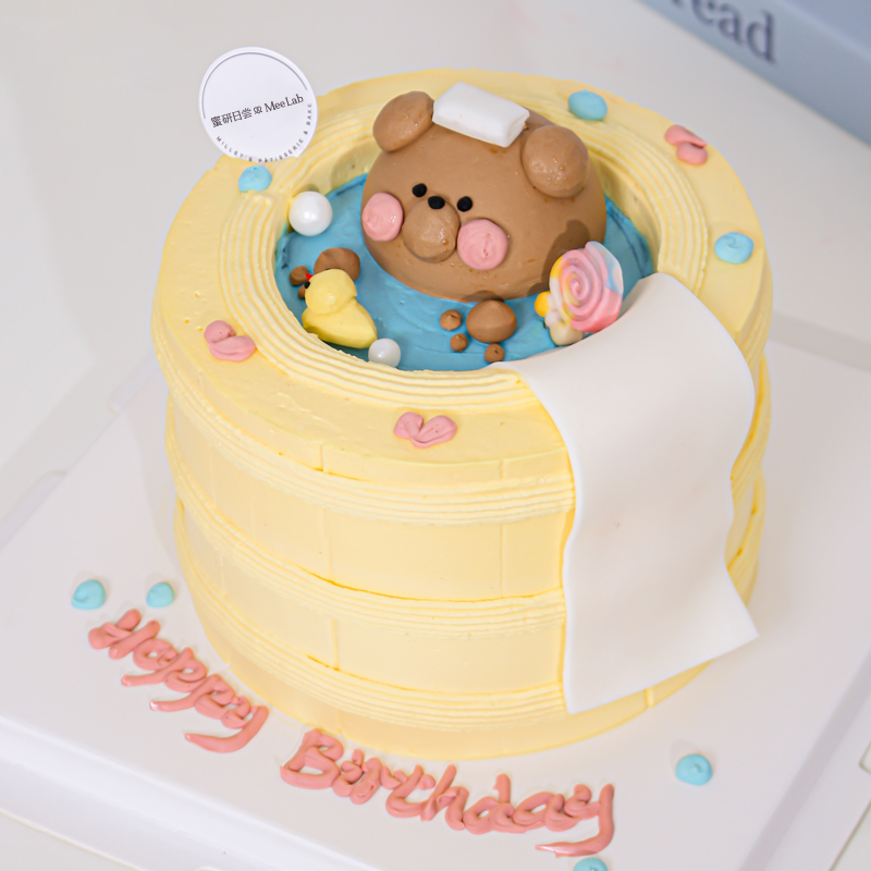 P021 “泡澡小熊” 手绘蛋糕