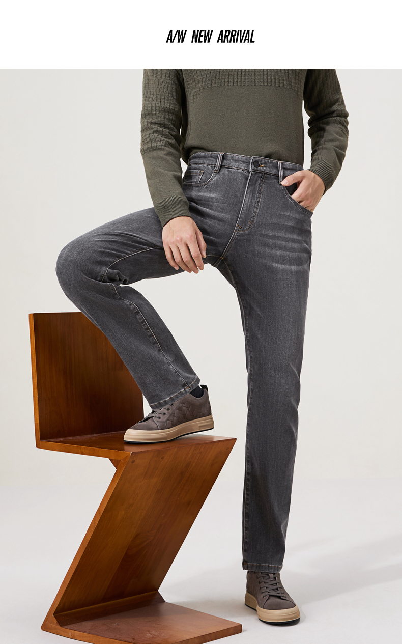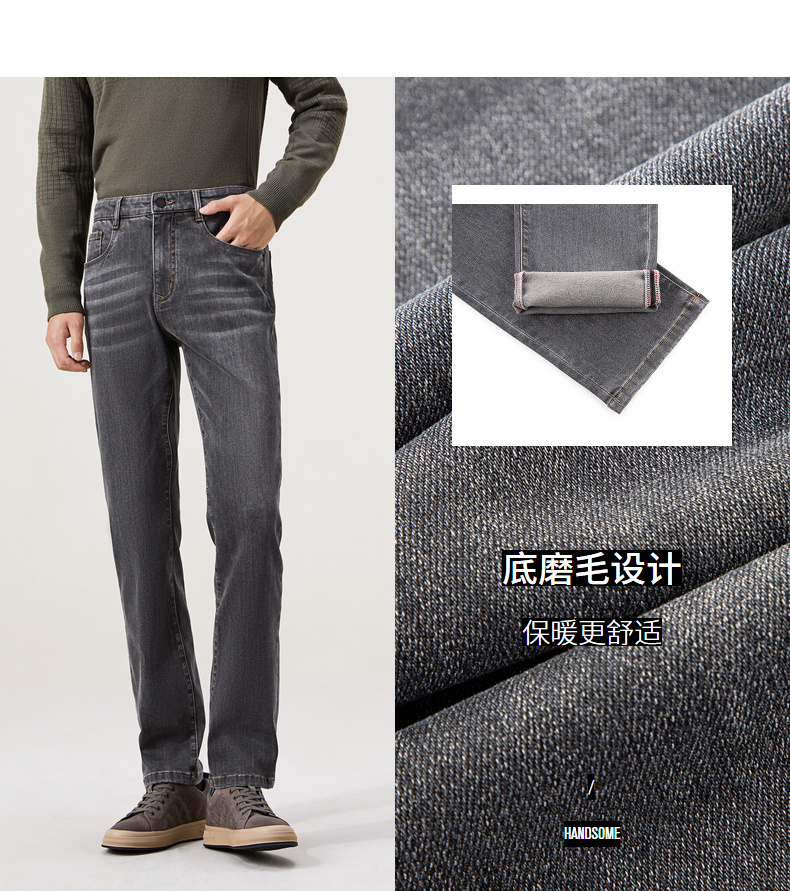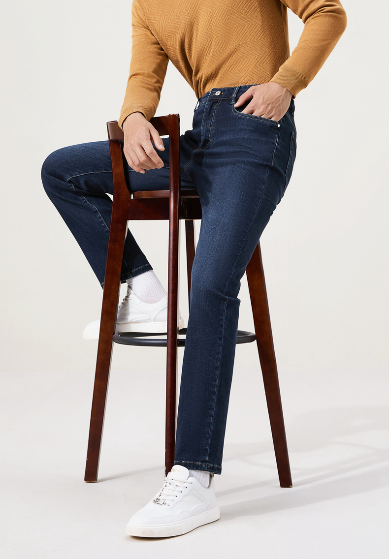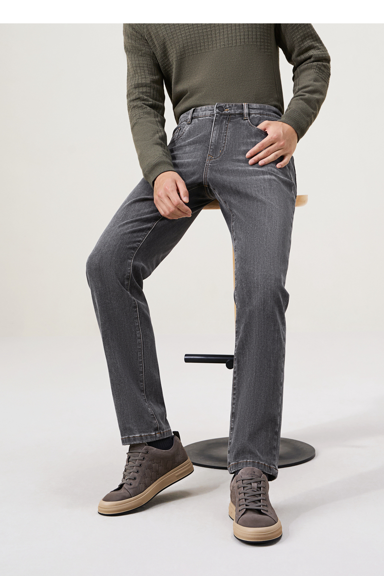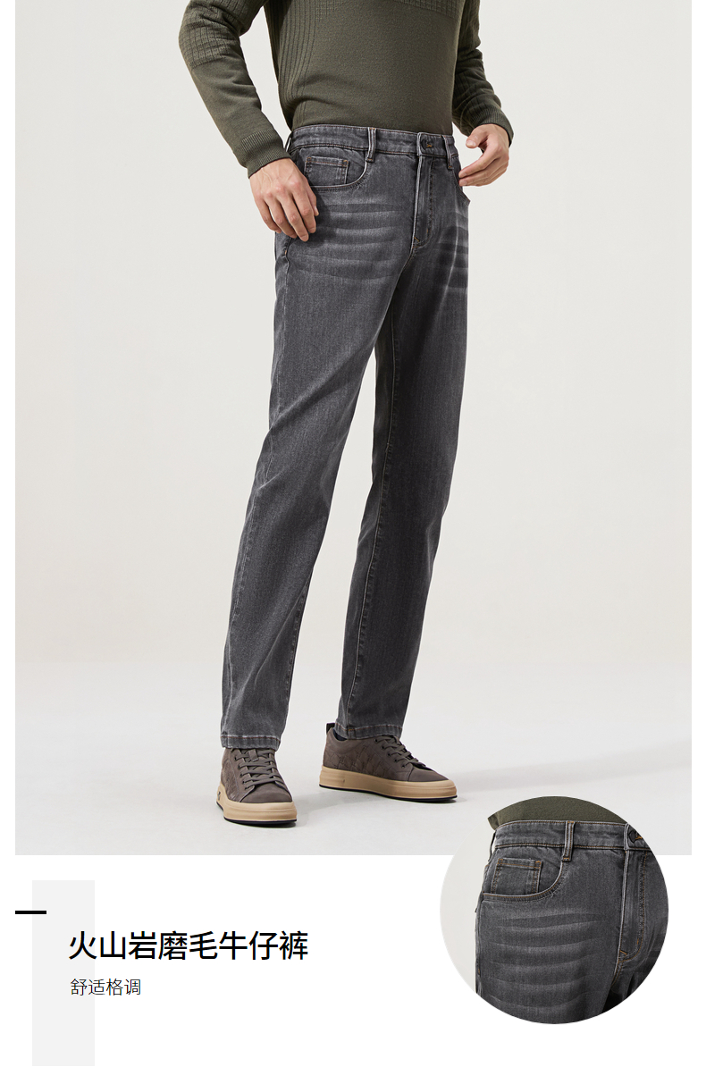 【火山岩】柒牌牛仔长裤秋冬保暖男士弹力中腰直筒裤子休闲男装129H71470